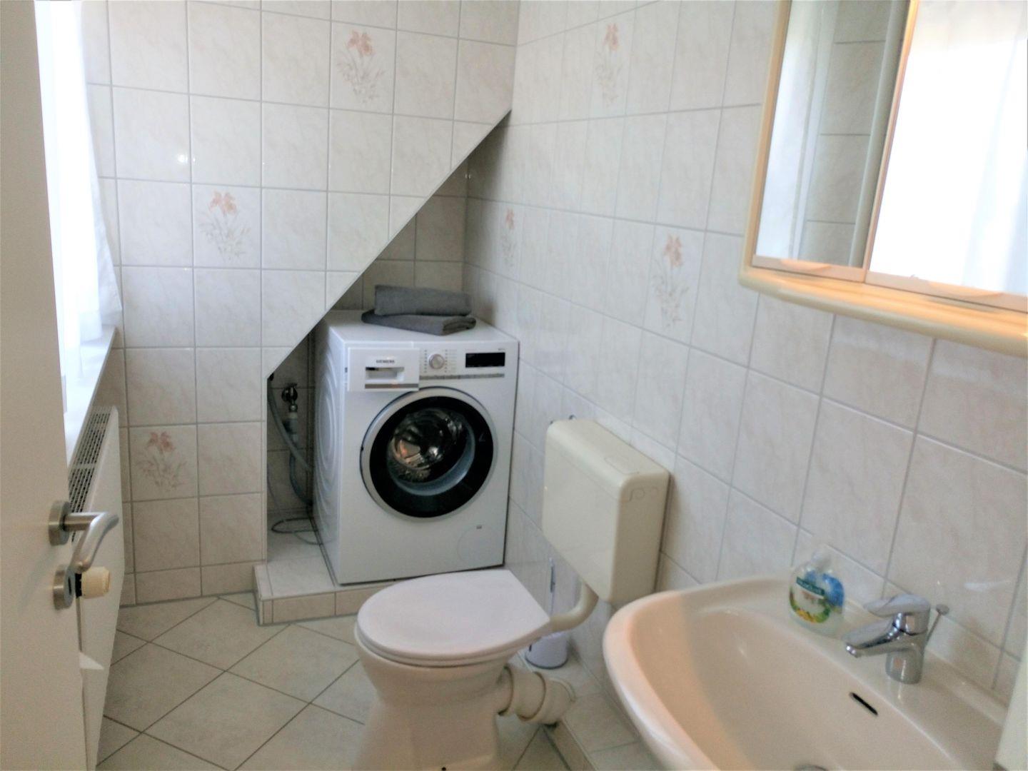 Noch ein zusätzliches Gäste WC mit Waschbecken und Waschmaschine befindet sich ebenfalls hier oben.