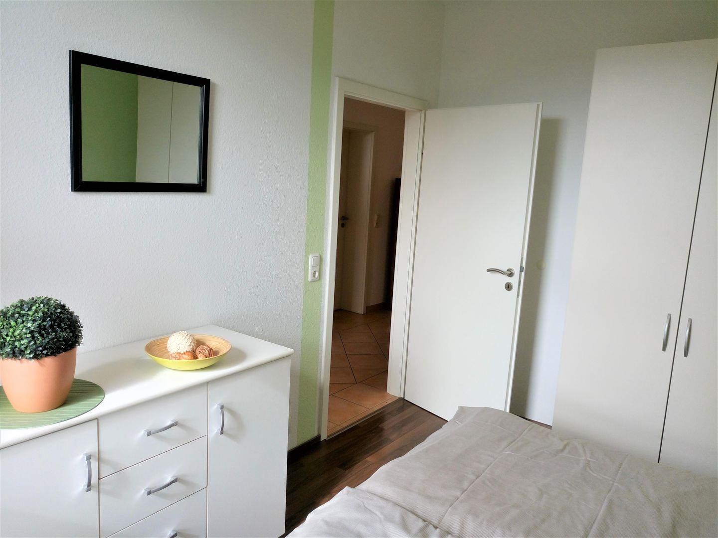 Ein gemütliches Schlafzimmer mit Doppelbett sorgt für die nötige Erholung, um voller Schwung in einen neuen Urlaubstag zu starten. Platz für Ihre Garderobe ist vorhanden.
