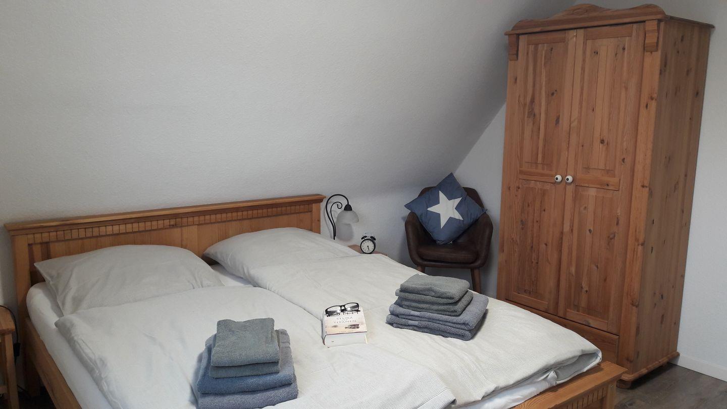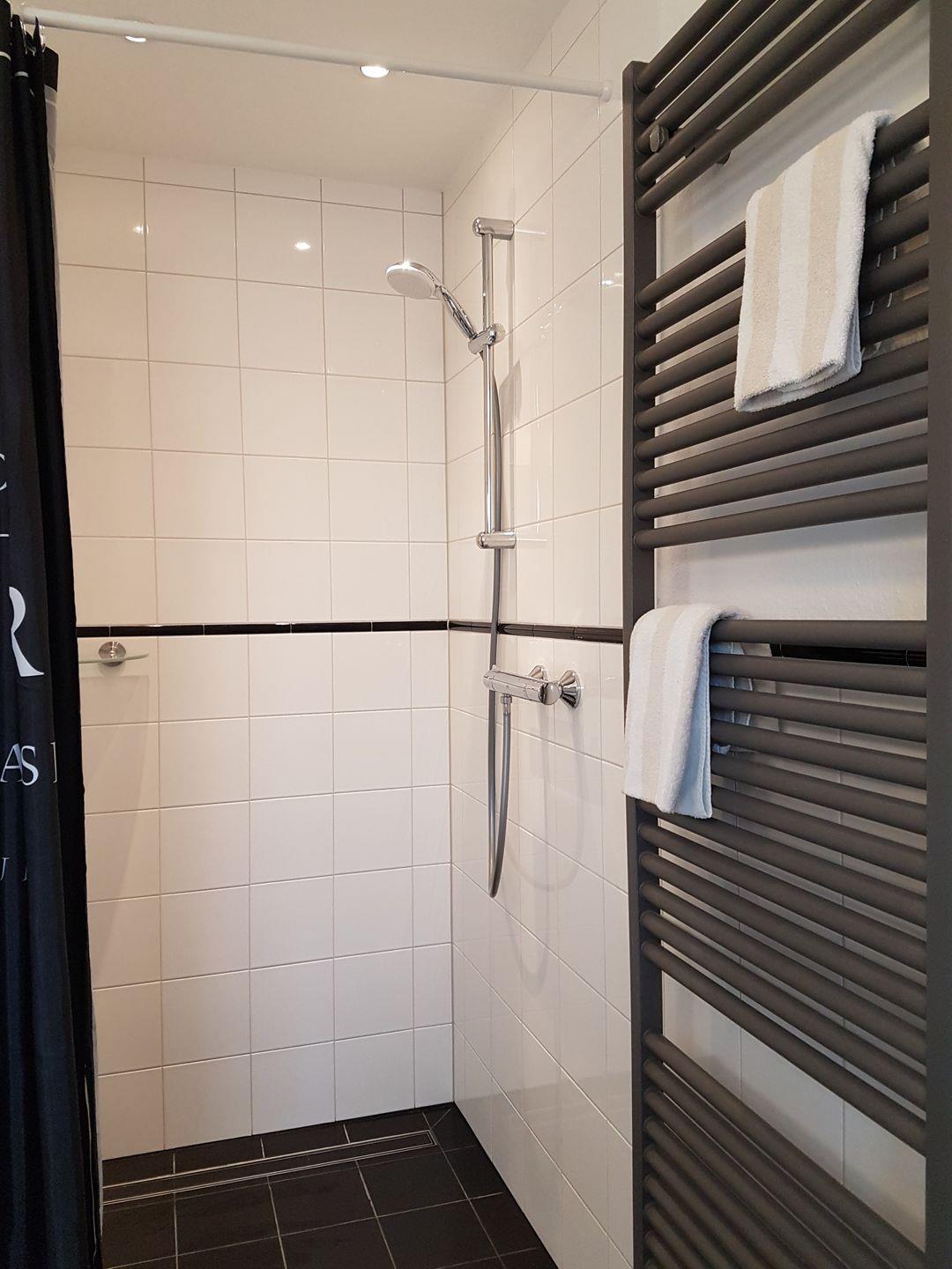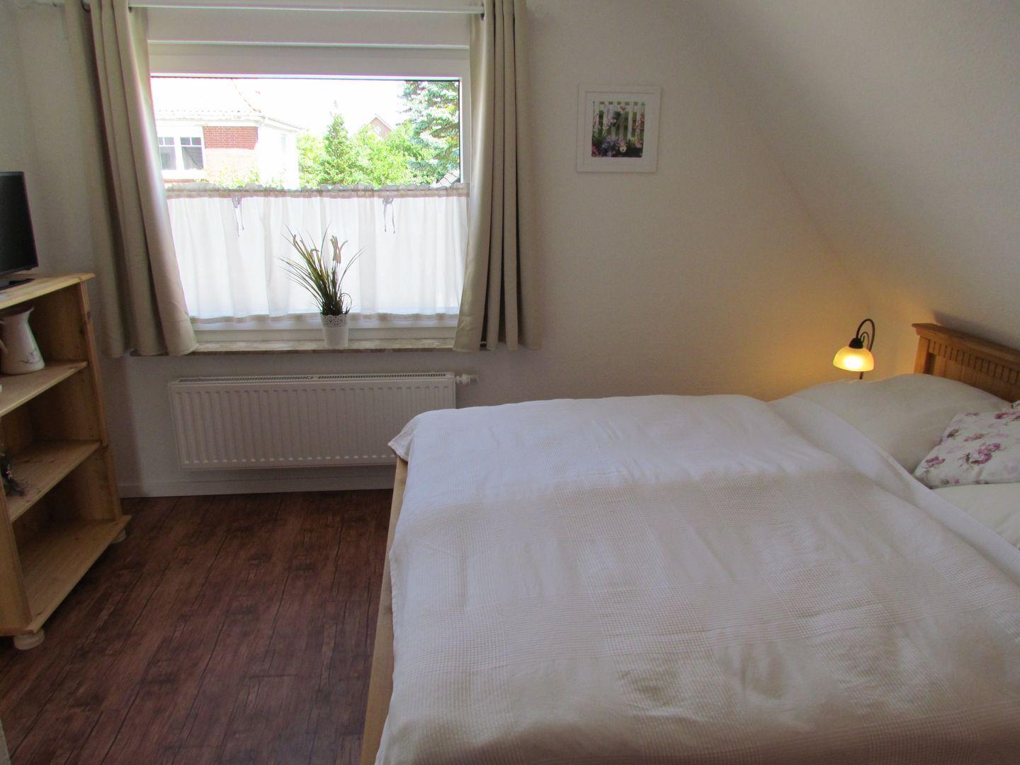 Ein Schlafzimmer mit TV und ein behindertenfreundliches Badezimmer mit Fußbodenheizung befinden sich ebenfalls im Erdgeschoss. Es gibt allerdings keine verbreiterten Türen, so das nur Platz für kleinere Rollstühle und Rollatoren vorhanden ist.