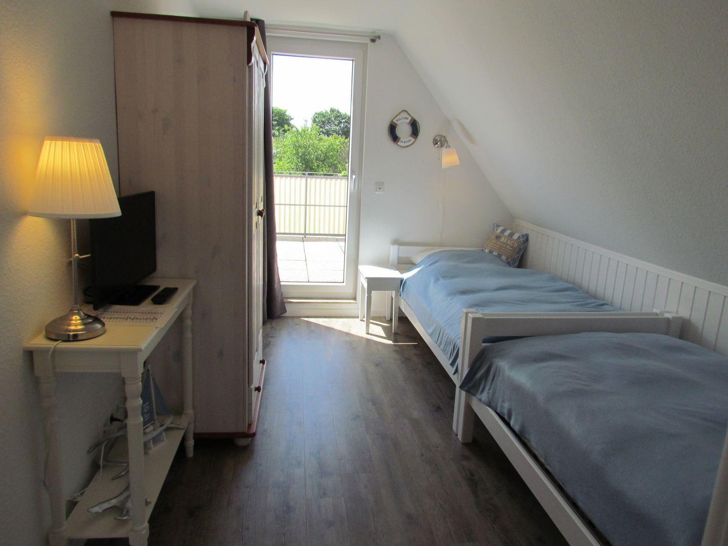 Im ersten Stock gibt es drei weitere Schlafzimmer mit TV und Kleiderschrank, von einem der Schlafzimmer geht es auf die schöne Dachterrasse. Ein Badezimmer mit Fußbodenheizung und Handtuchwärmer komplettiert den oberen Bereich.