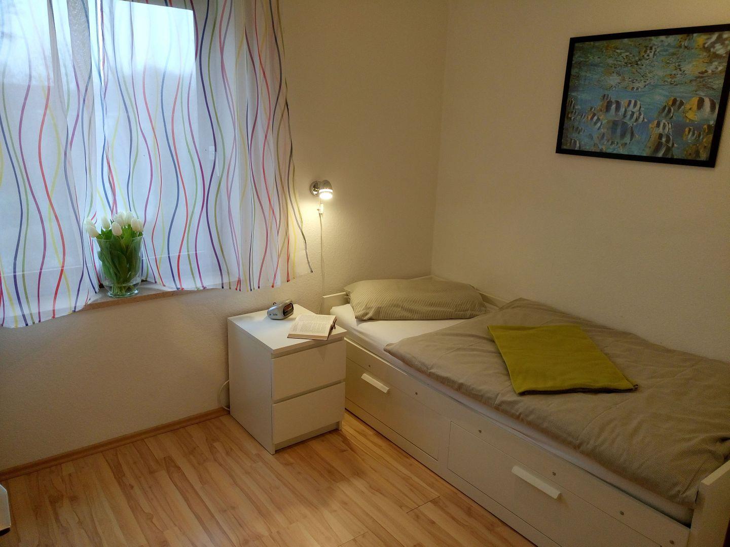Die Ferienwohnung bietet in 2 Schlafzimmern genügend Platz für 3 bis 4 Personen. Beide Schlafzimmer sind mit Außenjalousien versehen.