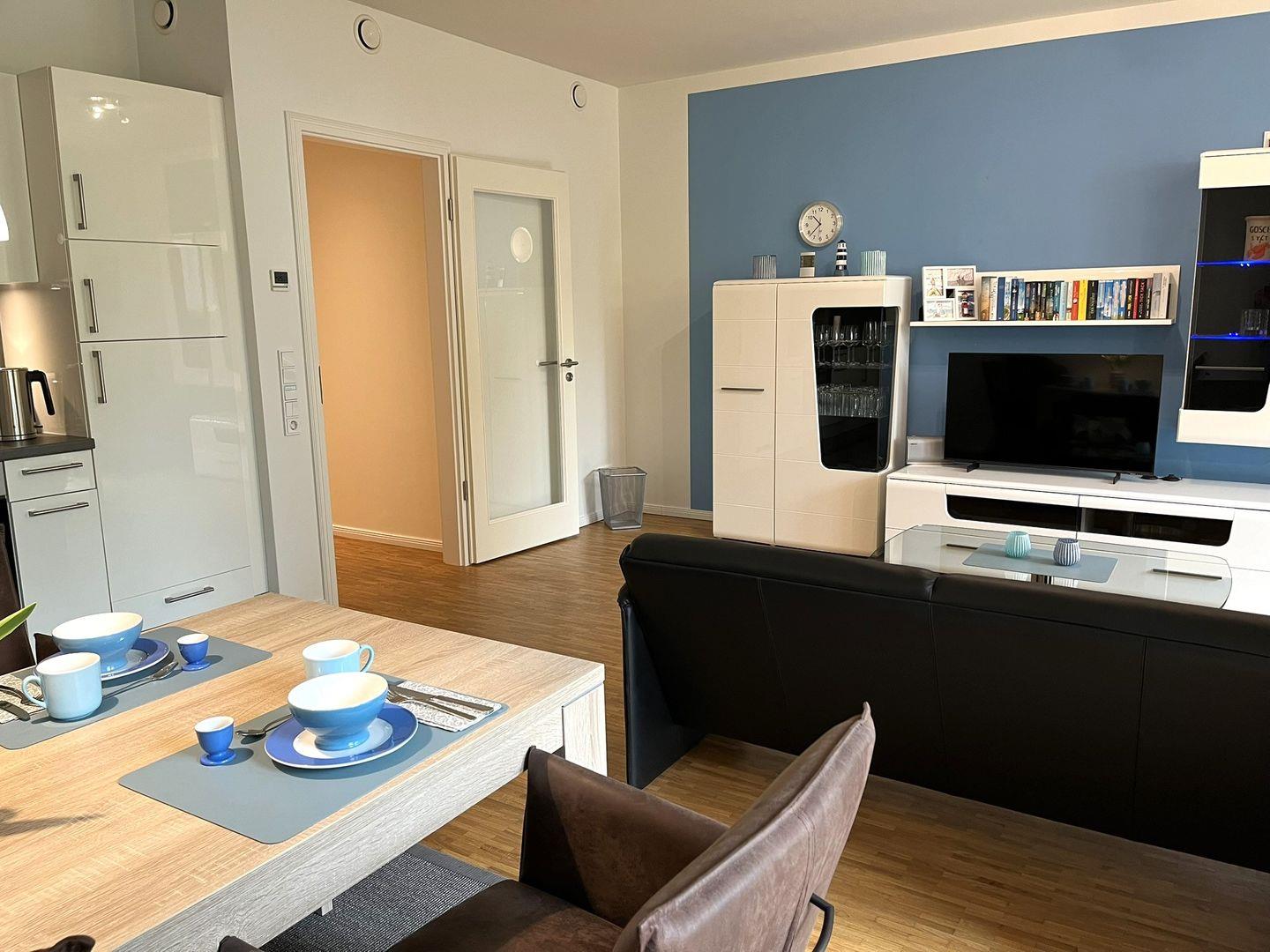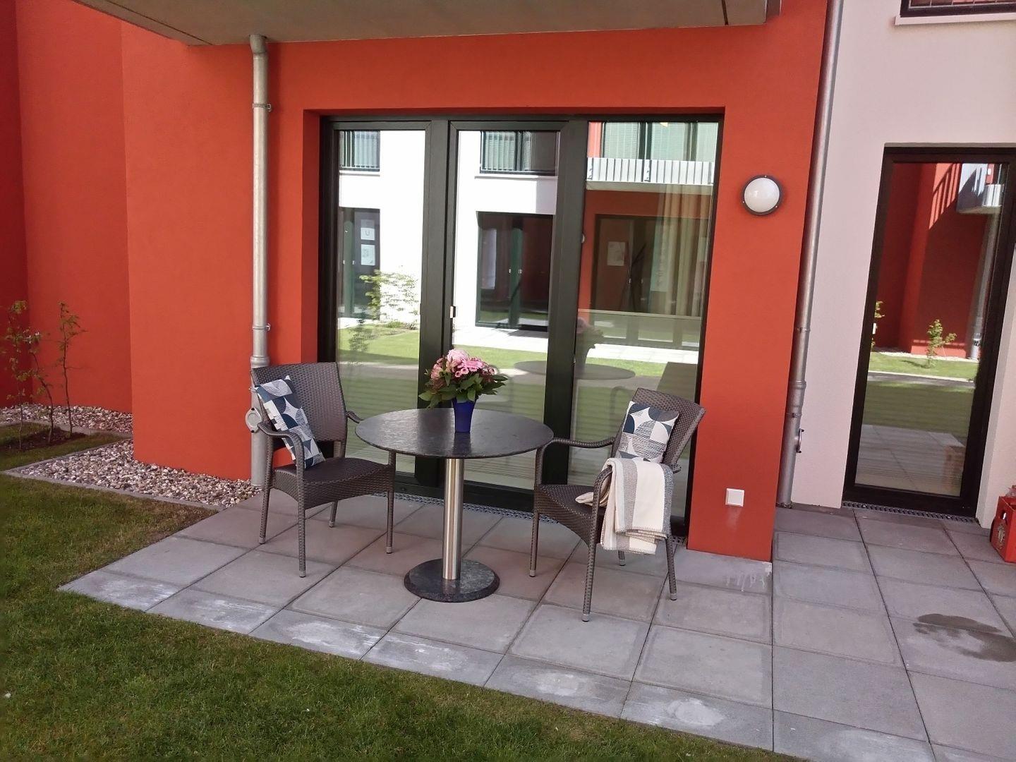 Moderne Ferienwohnung "Lenia 1" in Büsum mit Terrasse, Strandkorb und Komfort für entspannte Urlaubstage.
