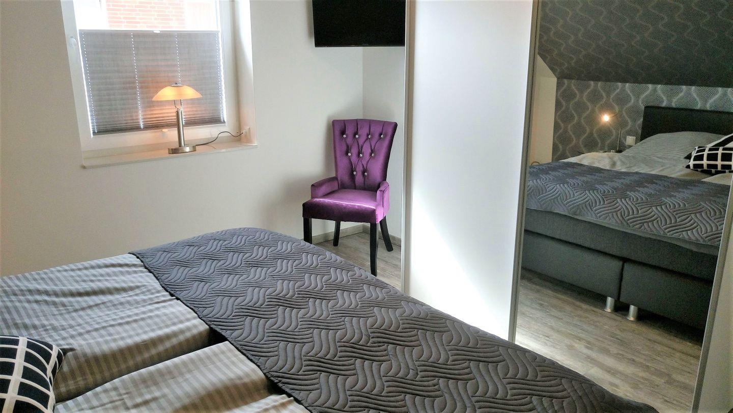 In der Wohnung gibt es zwei Schlafzimmer, die beide mit Boxspringbetten mit durchgehender Matratze (1,80x 2,20m und 1,40x 2m, beide mit durchgehender Matratze) Kleiderschränken und TV ausgestattet sind. Da ist erholsamer Schlaf garantiert.