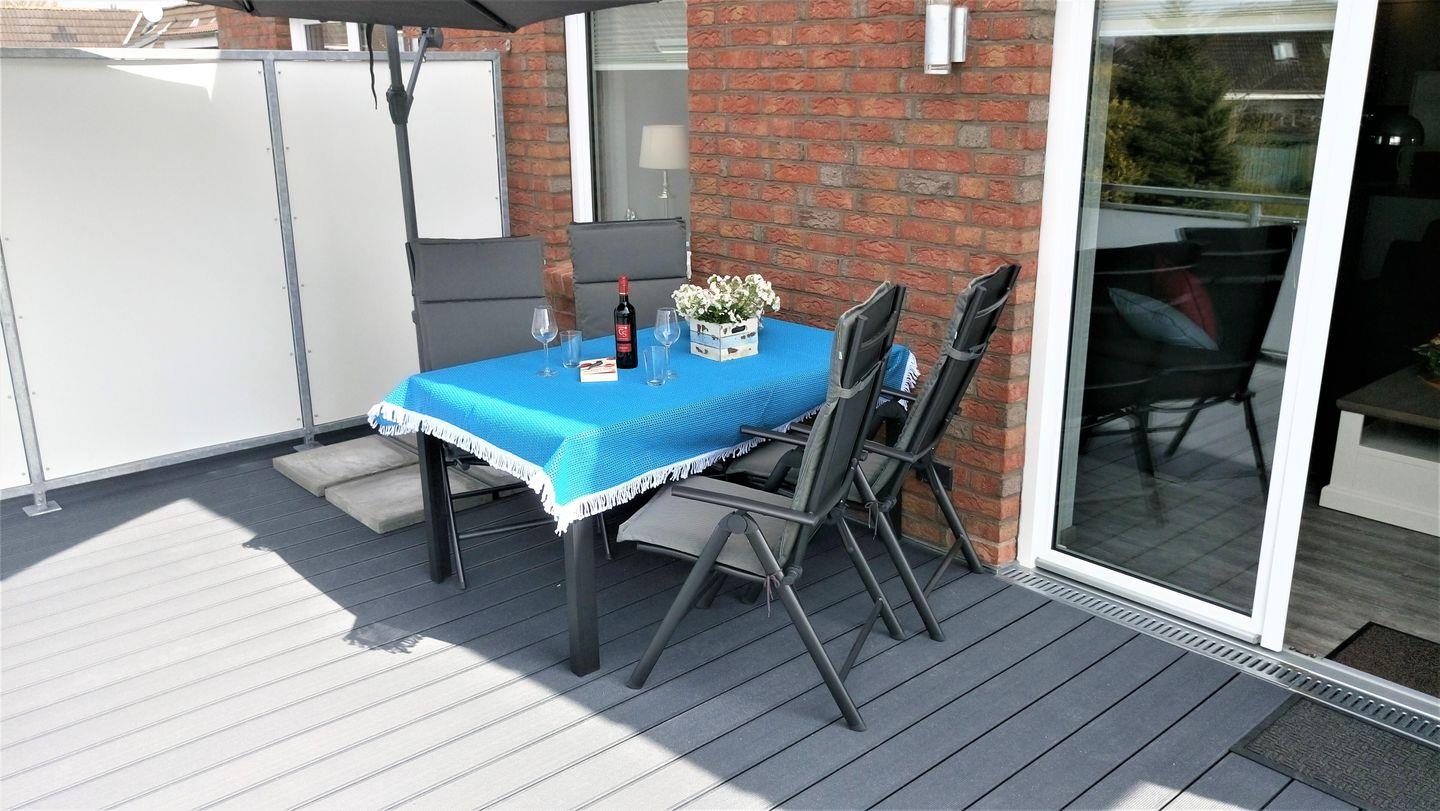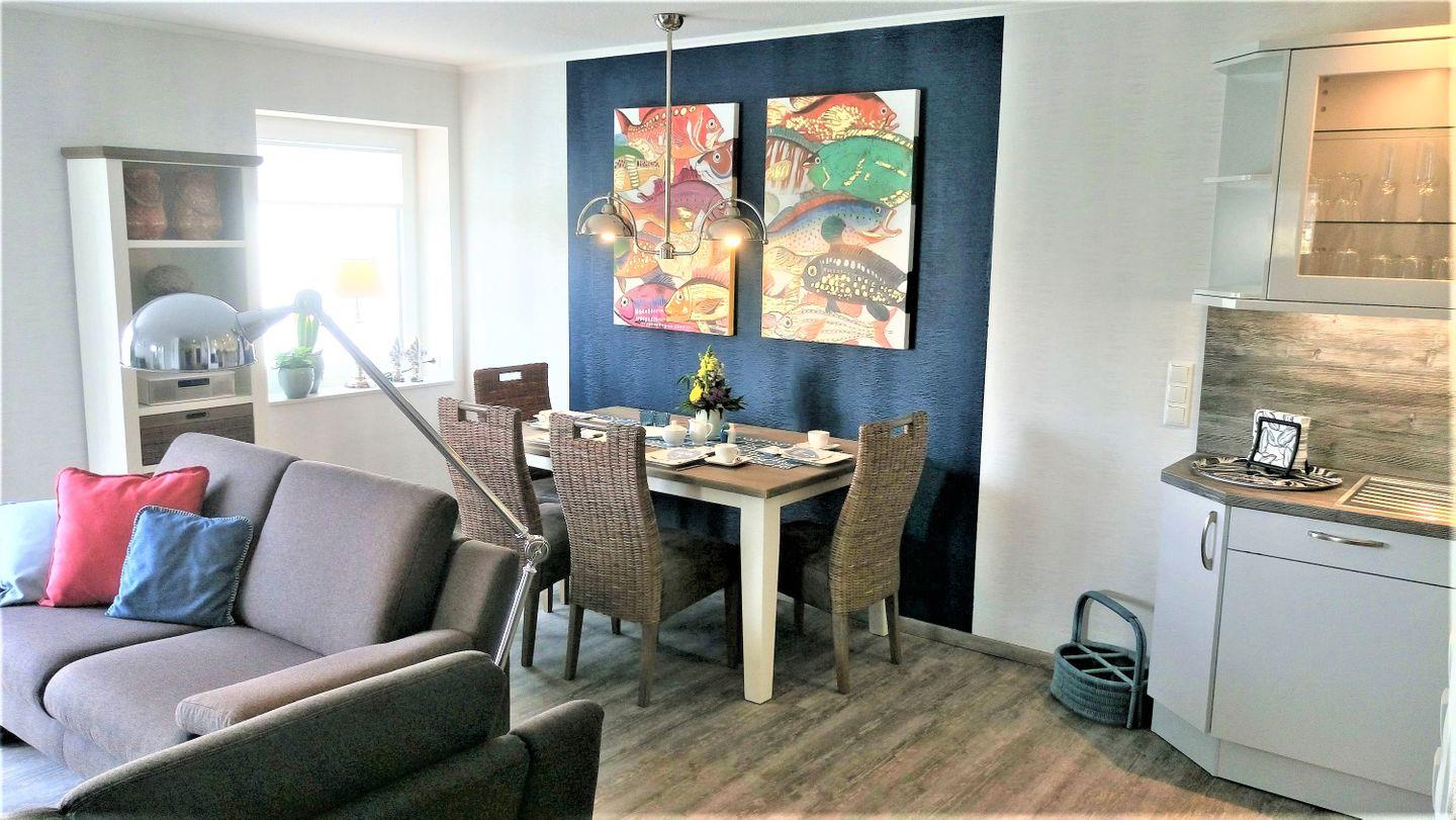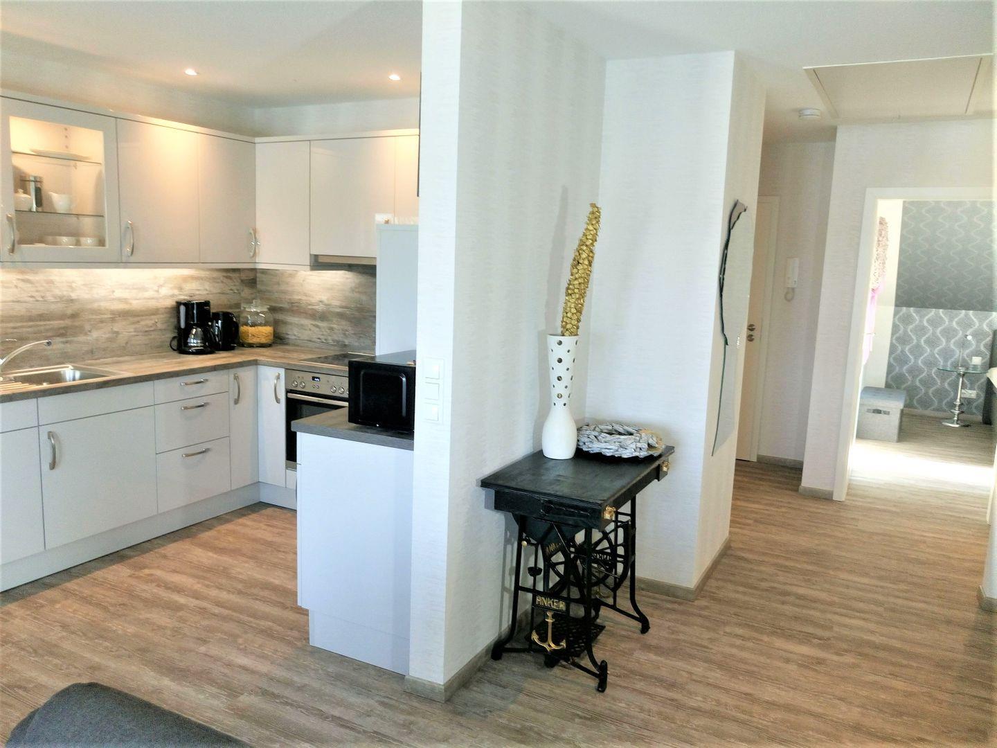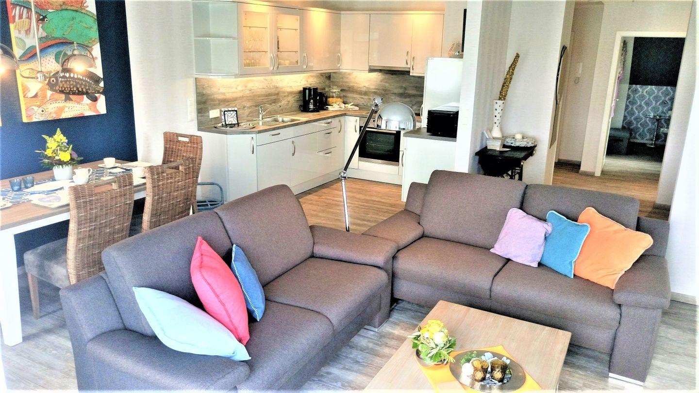 Moderne, barrierefreie Ferienwohnung in Büsum mit großem Sonnenbalkon und Fahrstuhl.