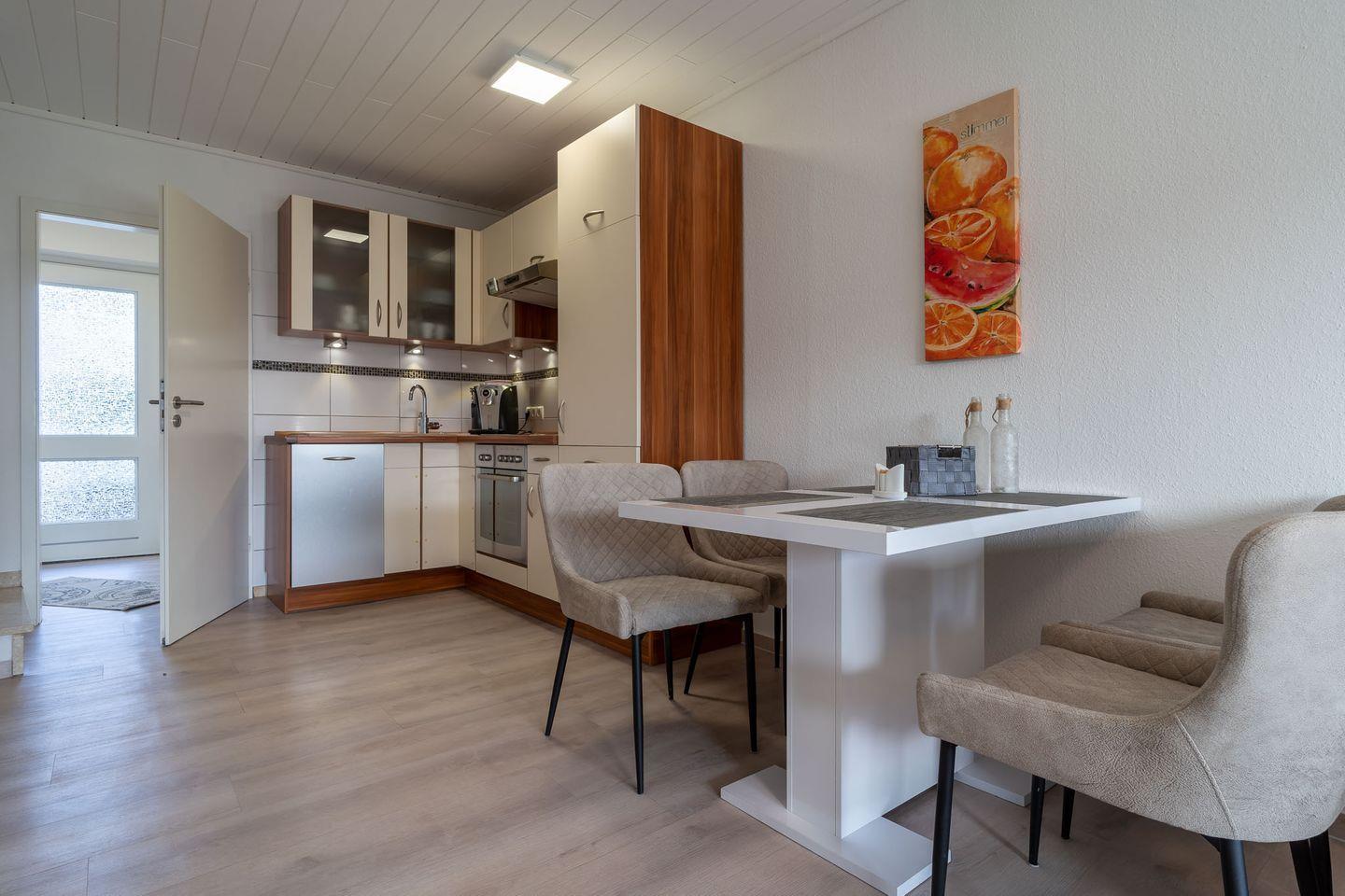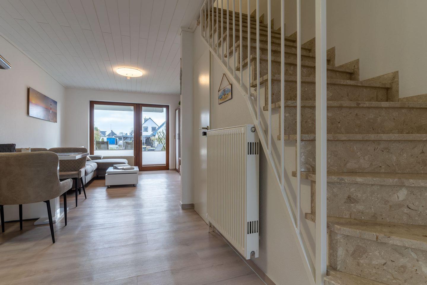 Herzlich willkommen in unserem gemütlichen Ferienhaus! Auf 2 Etagen und 63 qm finden Sie alles für einen erholsamen Urlaub. Die moderne Wohnküche und die Süd-Terrasse, mit Überdachung laden zum Verweilen ein. Zwei Schlafzimmer, 1 Badezimmer, 1 Gäste-WC, und Fahrräder für die Erkundung der Umgebung stehen bereit. Nur 150m entfernt: ein großer Kinderspielplatz. Erleben Sie unvergessliche Momente in dieser idyllischen Umgebung!