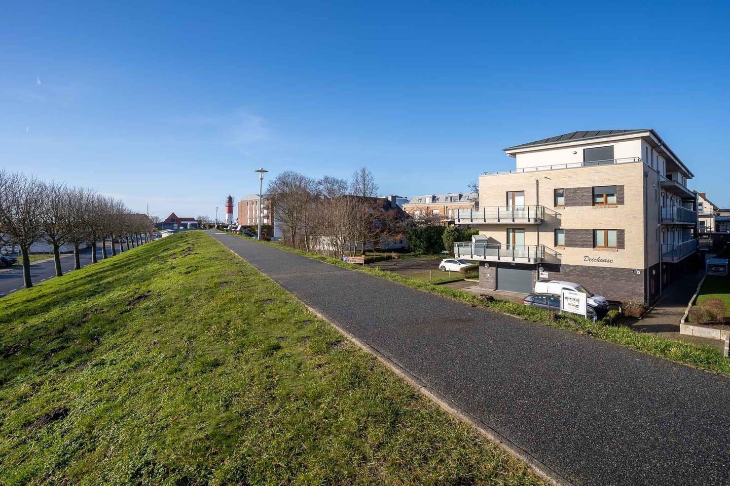 Willkommen in der exquisiten Ferienwohnung der bezaubernden Wohnanlage "Deichoase", die sich in direkter Nähe zum Hafen befindet. Dieses erstklassige Gebäude wurde im Jahr 2015 fertiggestellt und beeindruckt durch seine herausragende Lage, die Ihnen ein unvergleichliches Erlebnis bietet.
