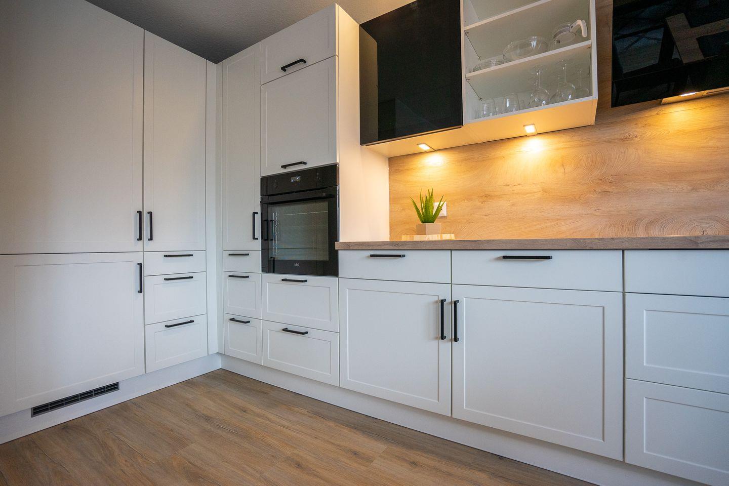 Die Küche bietet alles, was das Herz begeht. Von der Spülmaschine bis zum Gefrierschrank mit drei Fächern ist alles dabei.