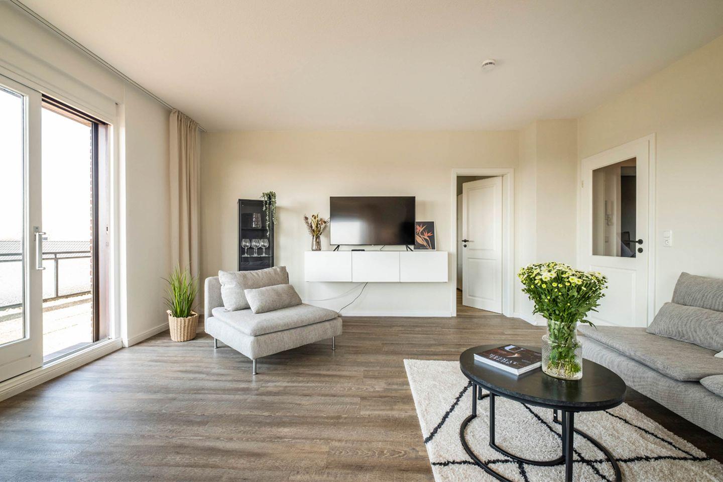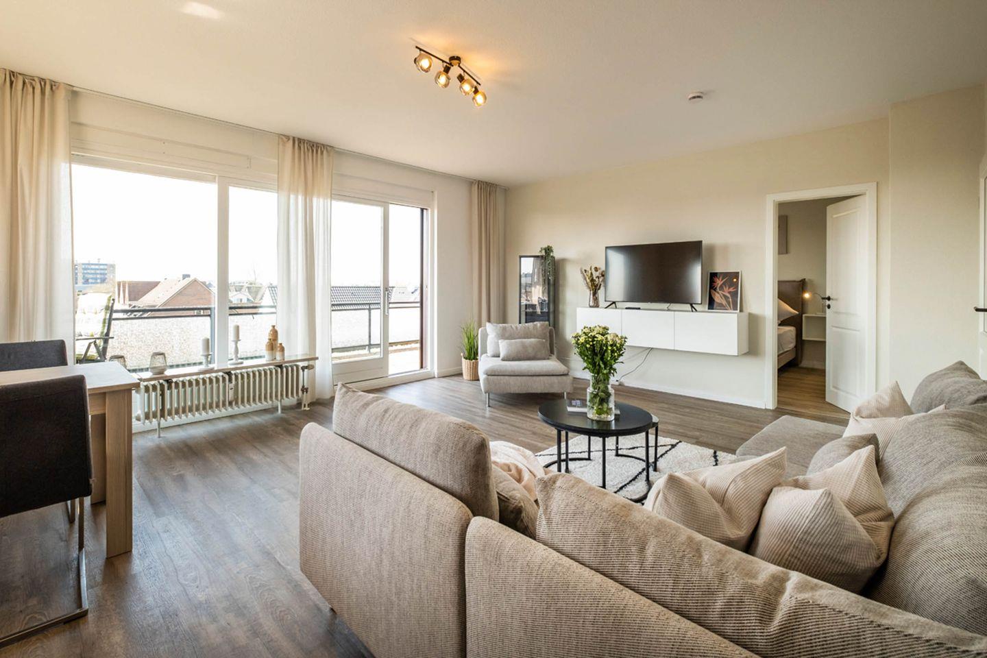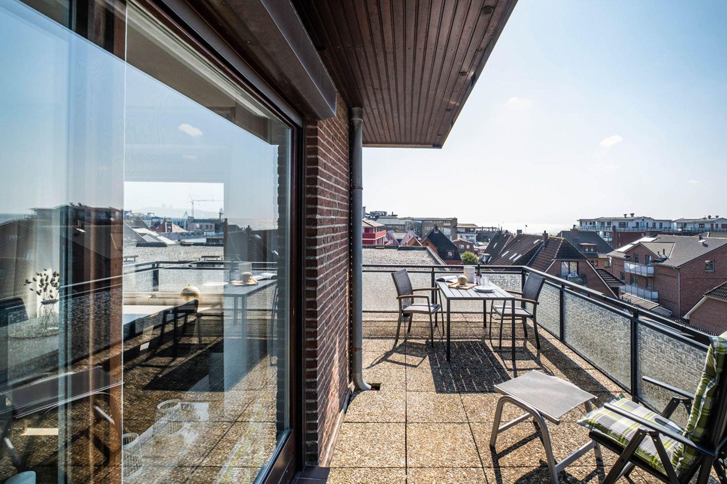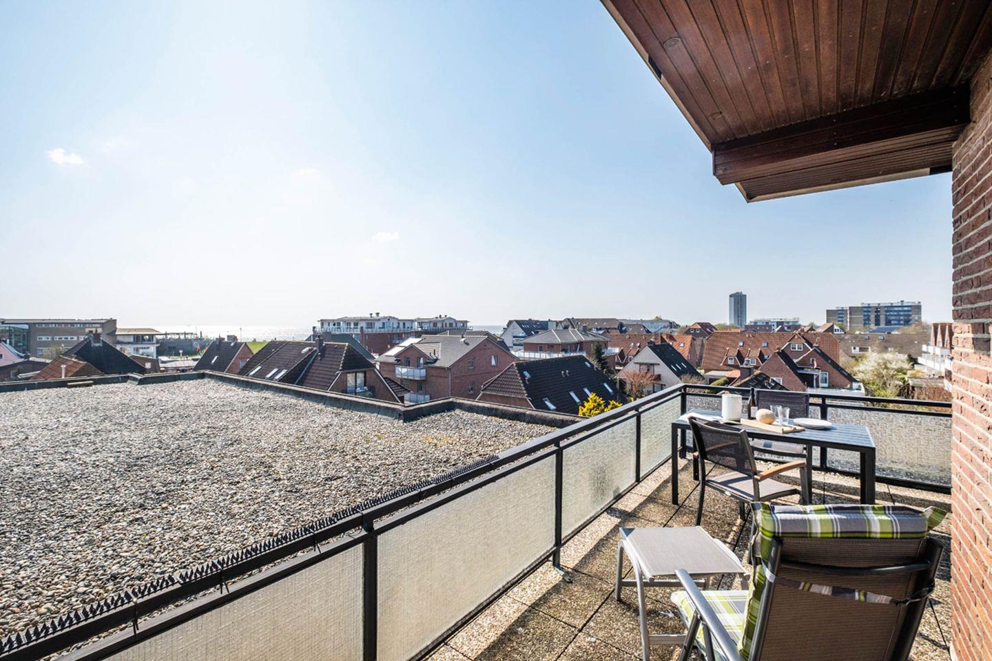 Moderne Penthouse-Ferienwohnung in Büsum mit Dachterrasse und Meerblick, inklusive Parkplatz und WLAN.