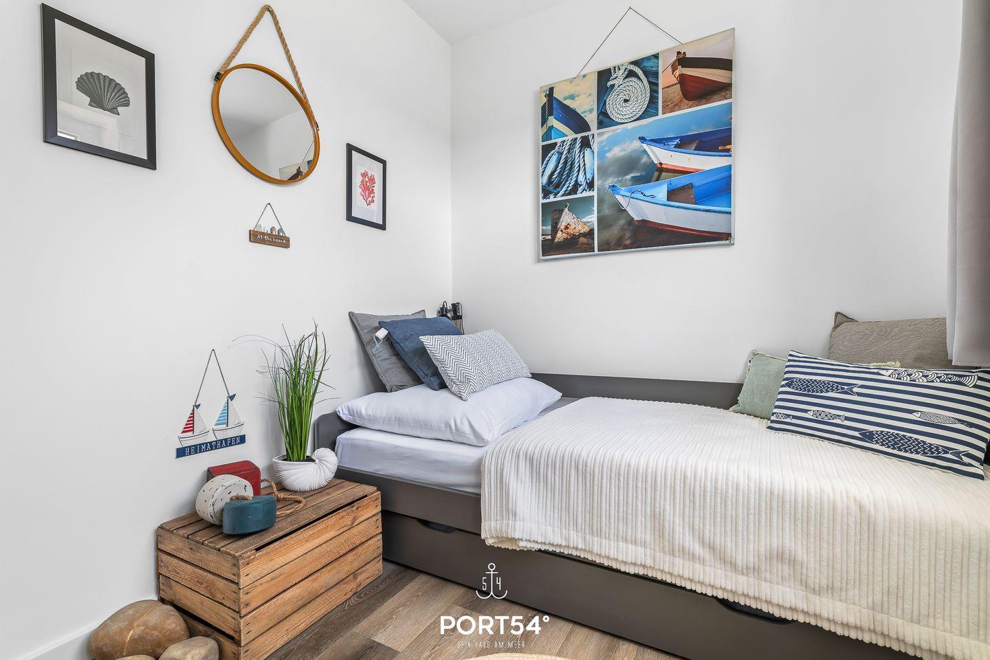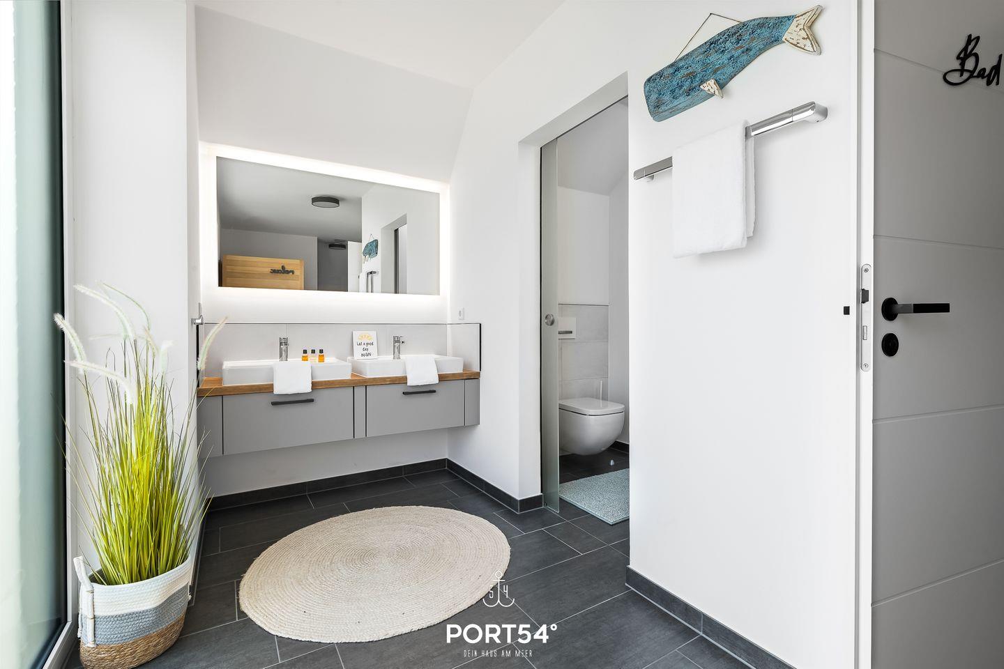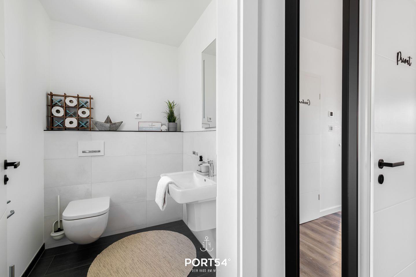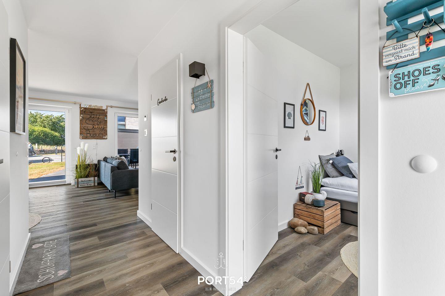 Auf 2 Etagen bietet das Ferienhaus "Stay Salty" auf ca. 106m² Platz für bis zu 6 Personen. Im Erdgeschoss bietet das moderne und stilvoll eingerichtete Ferienhaus einen offenen Wohn- und Essbereich mit angrenzender Küche, sowie ein Gäste-WC. An kälteren Tagen können Sie es sich vor dem Kaminofen gemütlich machen. Auf der möblierten Terrasse können Sie hervorragend am Grill den Tag ausklingen lassen, es stehen ein Kohle- und ein kleiner Elektrogrill für Sie bereit. Das kleine Schlafzimmer im Erdgeschoß ist mit einem Kojenbett ausgestattet, das ausgezogen zwei Schlafplätze zu je 90x200cm bietet. Das Obergeschoss teilt sich auf in zwei Schlafzimmer mit eigenem Zugang zum Balkon und je einem Doppeltbett von 160 x 200cm, durchgehende Matratze. Ein Badezimmer mit ebenerdiger Dusche und Infrarot-Wärmekabine, sowie separatem WC, Doppelwaschtisch und Waschmaschine vervollständigen das Obergeschoß. Nach langen Strandspaziergängen bietet die Infrarotkabine den perfekten Rückzugsort für entspannte Stunden. Alle Schlafzimmer verfügen über einen Flachbild-TV und sind mit Verdunkelungsmöglichkeiten ausgestattet. Vor dem Haus steht Ihnen ein kostenfreier Parkplatz zur Verfügung. Ihre eigenen Fahrräder oder die zum Haus gehörigen Fahrräder können Sie im abschließbaren Schuppen unterstellen. Der Schuppen im Garten ist mit einer Steckdose versehen, hier können E-Bikes geladen und untergestellt werden.
