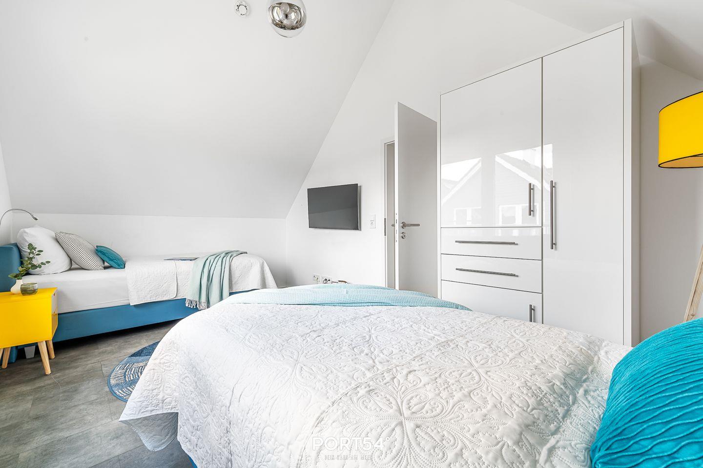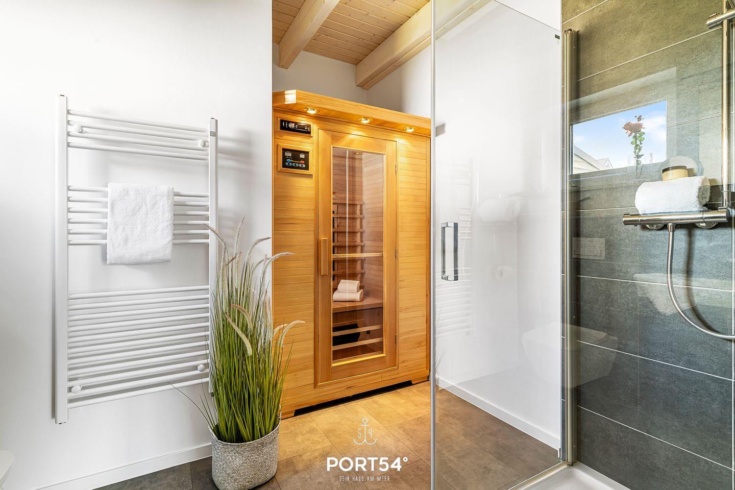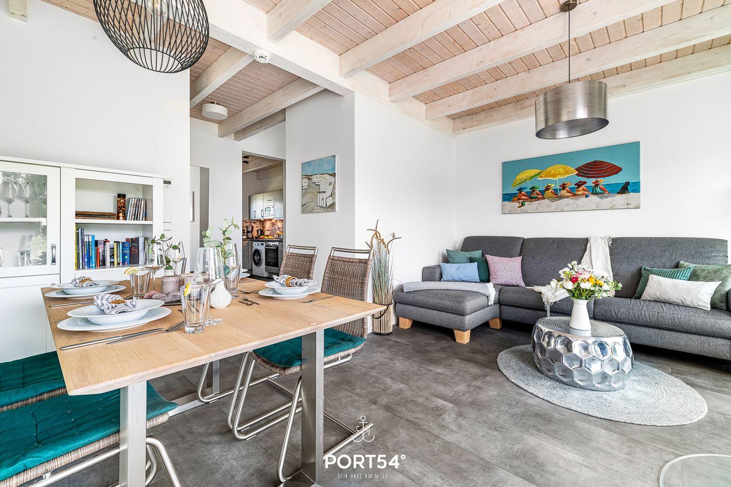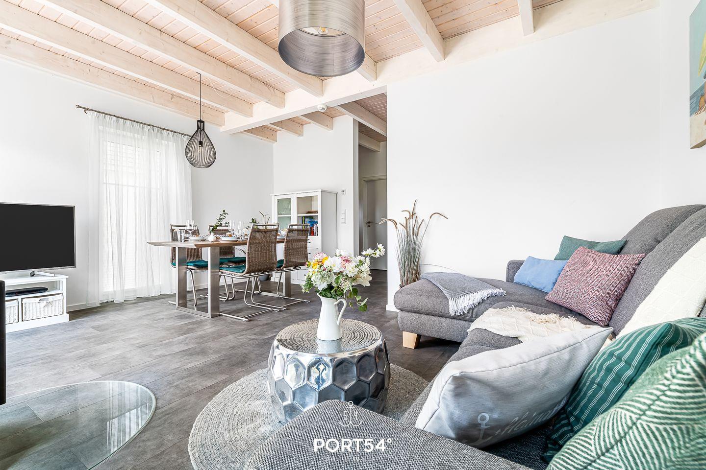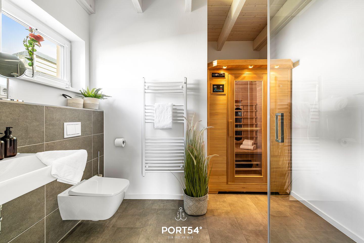 Das offen gestaltete Wohnkonzept mit einem offenen Wohn- und Essbereich und einer voll ausgestatteten Küche lädt zu gemeinsamen Aktivitäten ein. Es gibt 2 Schlafzimmer, eines mit einem Doppelbett eingerichtet und das andere Zimmer mit 2 Einzelbetten. Das Badezimmer im EG verfügt über eine Dusche & ist mit einer Infrarotsauna ausgestattet. Im oberen Badezimmer lädt eine Badewanne zum Entspannen ein. Die großzügige Terrasse lädt zu geselligen Frühstücken an der frischen Nordseeluft ein.
