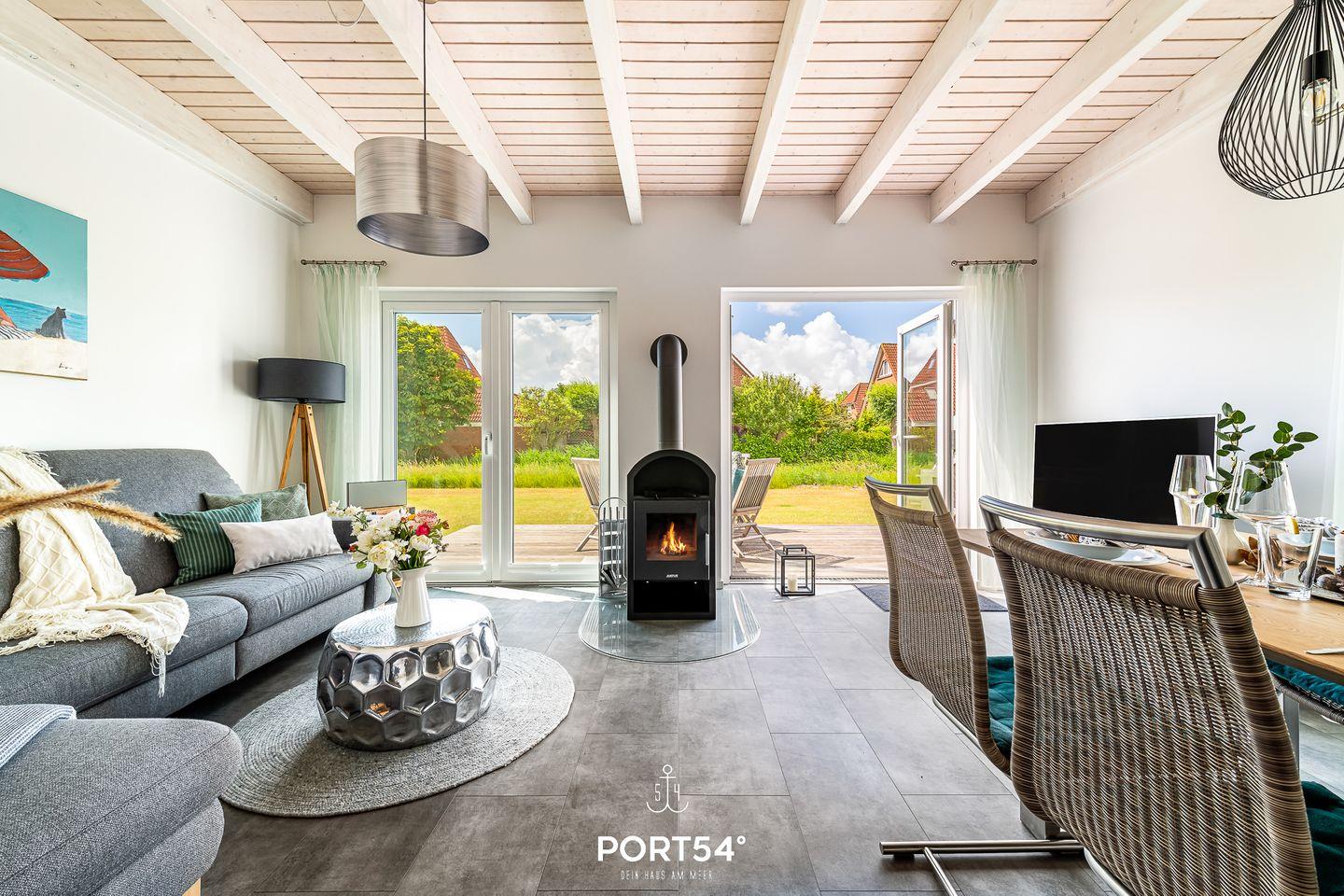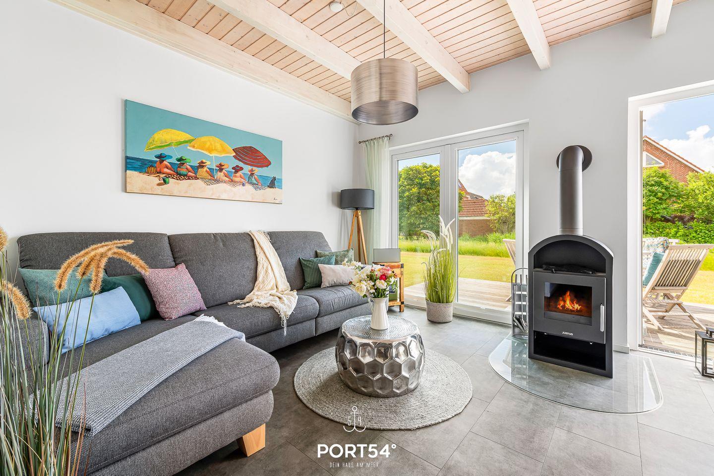 Modernes Ferienhaus "Sounds of the Sea" nahe der Nordsee mit Sauna, Kamin und großer Terrasse für entspannte Urlaubstage.