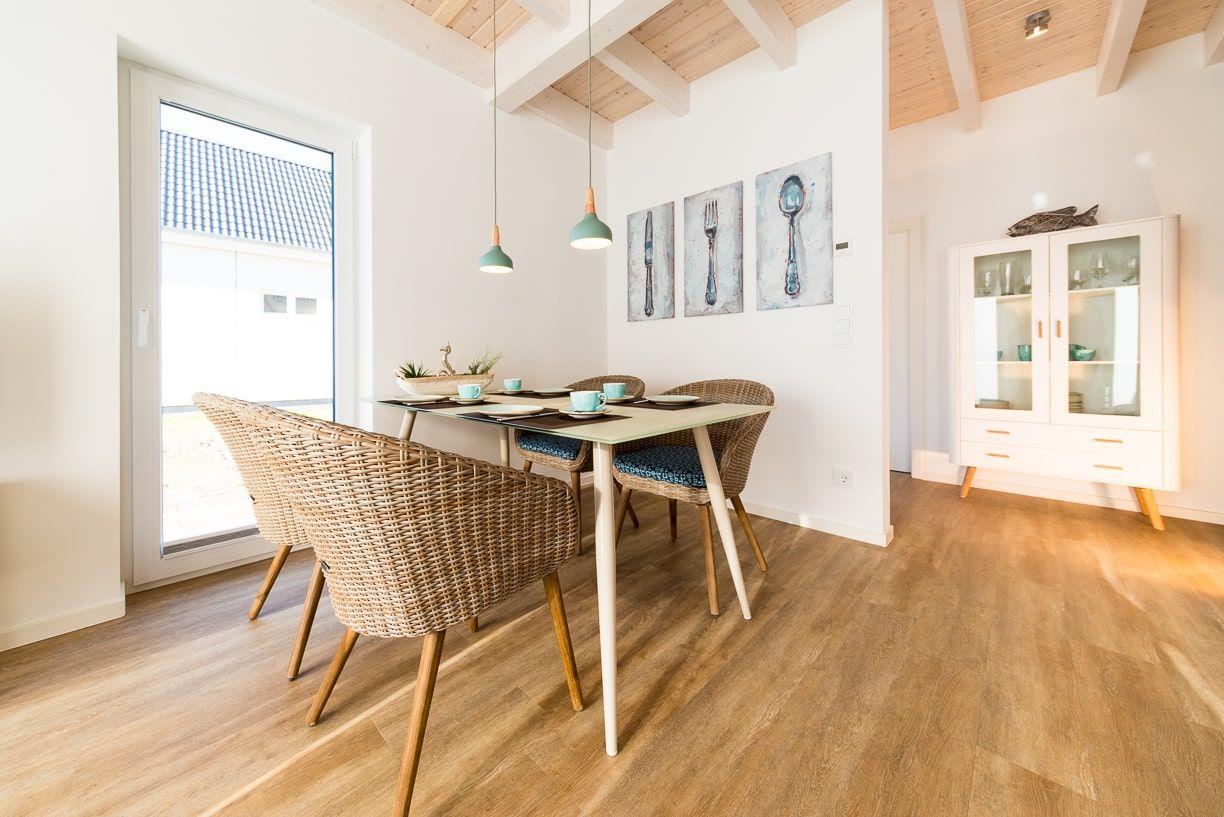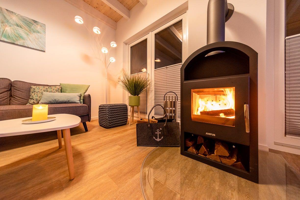 Im offenen Wohn-Essbereich mit großem Fenster steht ein großer Esstisch sowie eine gemütliche Sitzgruppe mit Ecksofa, von der aus Ihr entspannt auf den großen Flachbild-Fernseher schauen könnt. Über "Magenta TV" könnt Ihr eine breite Programmvielfalt genießen. Wenn Ihr lieber vom Esstisch aus fernsehen wollt, lässt sich der Fernseher mit seinem stabilen Schwenkarm mühelos entsprechend ausrichten. Auch eine Auswahl an amüsanten Spielen wartet auf Euch. Bei kühlerem Wetter bereitet Euch ein knisterndes Feuer im Kaminofen wohlige Atmosphäre.