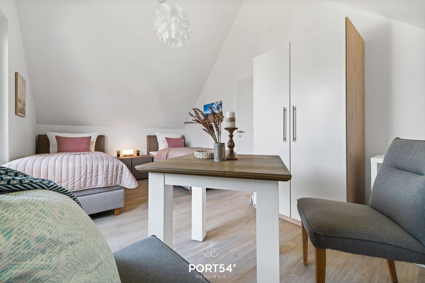 Watt´n Huus! Auf zwei Etagen und ca. 88m² Wohnfläche bietet dieses moderne und hochwertig ausgestattete Ferienhaus Platz für bis zu vier Personen. Im Erdgeschoss erwartet Sie ein offener Wohn- und Essbereich mit Zugang zur Terrasse, eine vollausgestattete Küche sowie ein Tageslicht-Duschbad mit ebenerdiger Dusche und Infrarot-Sauna. Zwei Schlafzimmer im Obergeschoss, wovon eins mit Doppelbett (180x200cm) und das andere mit zwei Einzelbetten (je 90x200cm) ausgestattet ist, bieten erholsame Nächte. Die voll verdunkelbaren, mit Insektenschutzgittern ausgestatteten Fenster fördern eine angenehme Nachtruhe. Das ebenfalls im Obergeschoss gelegene Wannenbad lädt zur Entspannung ein. Für die kleinsten Gäste steht ein Hochstuhl und ein Kinderreisebett zur Verfügung. Auf der vollmöblierten Terrasse mit angrenzender Rasenfläche lassen sich sonnige Tage oder laue Abende am Kohle-Grill verbringen. Direkt vor dem Haus steht ein eigener, kostenfreier Parkplatz zur Verfügung. Mitgebrachte, oder vor Ort ausgeliehene Fahrräder können im abschließbaren Fahrradschuppen direkt vor dem Haus untergestellt werden. Sollten Sie Ihren Nordseeurlaub mit der ganzen Familie und Freunden verbringen wollen, können wir Ihnen durch die Verwaltung mehrerer Objekte auch eine Symbiose aus 2 nebeneinander liegenden Ferienwohnungen ermöglichen.
