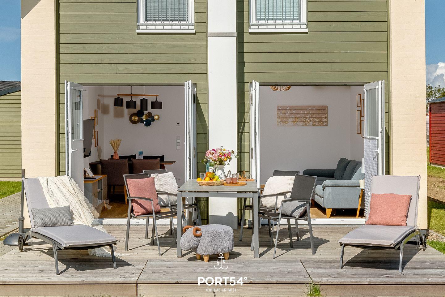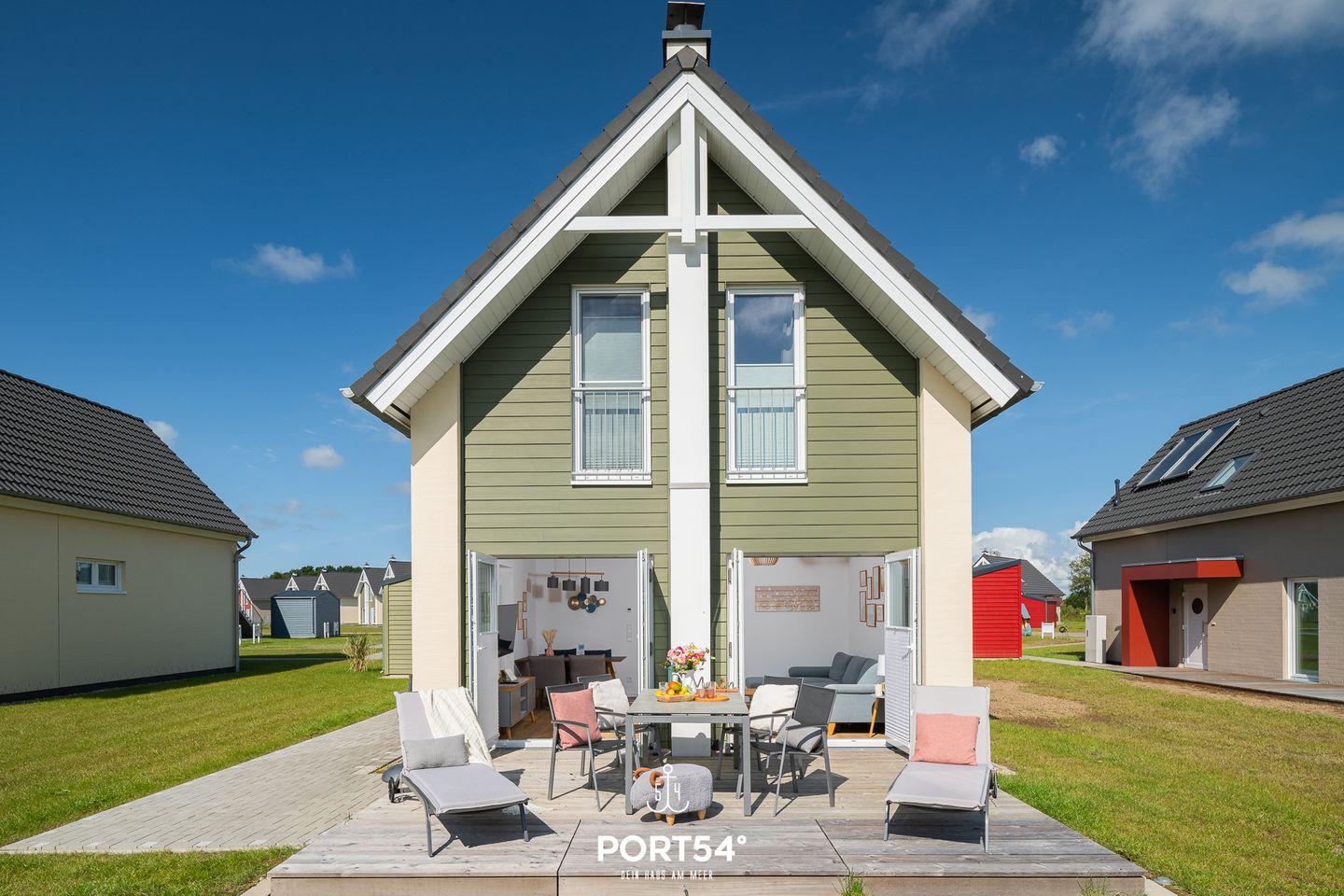 Das zweistöckige, freistehende Haus "Nordic Lodge" bietet auf ca. 88m² Urlaub der Extraklasse. Im EG erwartet Sie ein offener Wohn- und Essbereich mit Zugang zur Terrasse, eine vollausgestattete Küche sowie ein Bad mit ebenerdiger Dusche. 2 Schlafzimmer im OG, wovon eins mit einem Doppelbett & das andere mit zwei Einzelbetten ausgestattet ist. Das im OG gelegene Wannenbad lädt zur Entspannung ein. Auf der Terrasse mit angrenzender Rasenfläche lassen sich sonnige Tage verbringen.