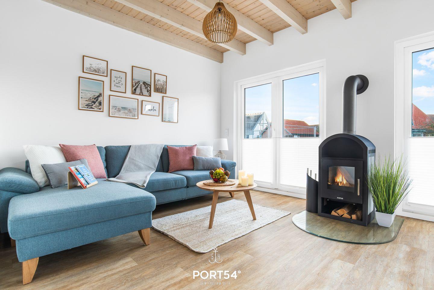 Nordic Lodge Büsum bietet komfortables Wohnen mit Kamin, Terrasse und Nähe zur Nordsee für entspannte Urlaubstage.