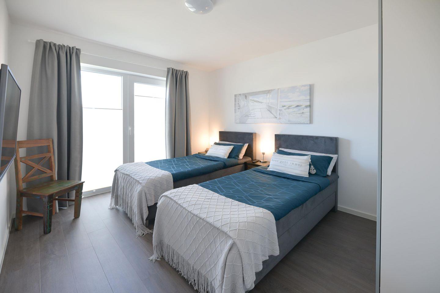 Die Ferienwohnung "Haukes Koje" mit 80m² bietet viel Platz verteilt auf 3 Zimmer. Die Wohnung besticht vor allem durch ihre Barrierefreiheit und ihre breite Türen. Auch Gäste, die Ihren Ruhestand an der frischen Seeluft auskosten wollen, werden sich in "Haukes Koje" bestens aufgehoben fühlen. Das Wohnzimmer mit Kaminofen und einem Flatscreen-TV lädt nach einem Spaziergang an der frischen Nordseeluft zum gemeinsamen Beisammensein ein. Die Küche ist hochwertig und voll ausgestattet. In den separaten Schlafzimmern gibt es in dem einen ein Doppelbett und in dem anderen 2 Einzelbetten. Beide Schlafzimmer sind zudem mit einem Flatscreen-TV ausgestattet. Das moderne Badezimmer verfügt neben der barrierefreien Dusche auch über eine Infrarotkabine. Die Türöffnung der Dusche hat die Maße 1,20 x 1,20 m. Für erholsame Urlaubstage und -nächte sind alle Zimmer mit Insektenschutzgittern ausgestattet. Alle Informationen über den Erhalt der Gästekarte erhalten Sie bei Buchung. Ein weiteres Highlight der Wohnung ist die Terrasse mit einem Holzkohlegrill und Terrassenmöbeln, auf der Sie die gesunde Nordseeluft genießen können. Ein PKW-Stellplatz steht Ihnen zur Verfügung. Mitgebrachte oder vor Ort ausgeliehene Fahrräder können im abschließbaren Fahrradschuppen direkt vor dem Haus untergestellt werden. Sollten Sie Ihren Nordseeurlaub mit der ganzen Familie und Freunden verbringen wollen, können wir Ihnen durch die Verwaltung mehrerer Objekte auch eine Symbiose aus 2 nebeneinander liegenden Ferienwohnungen ermöglichen.