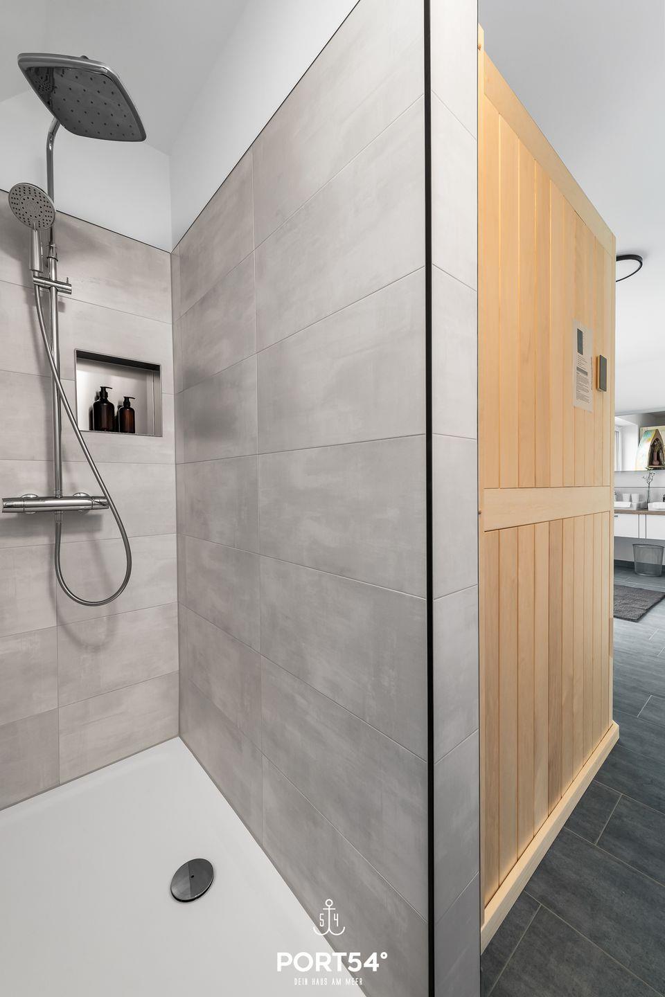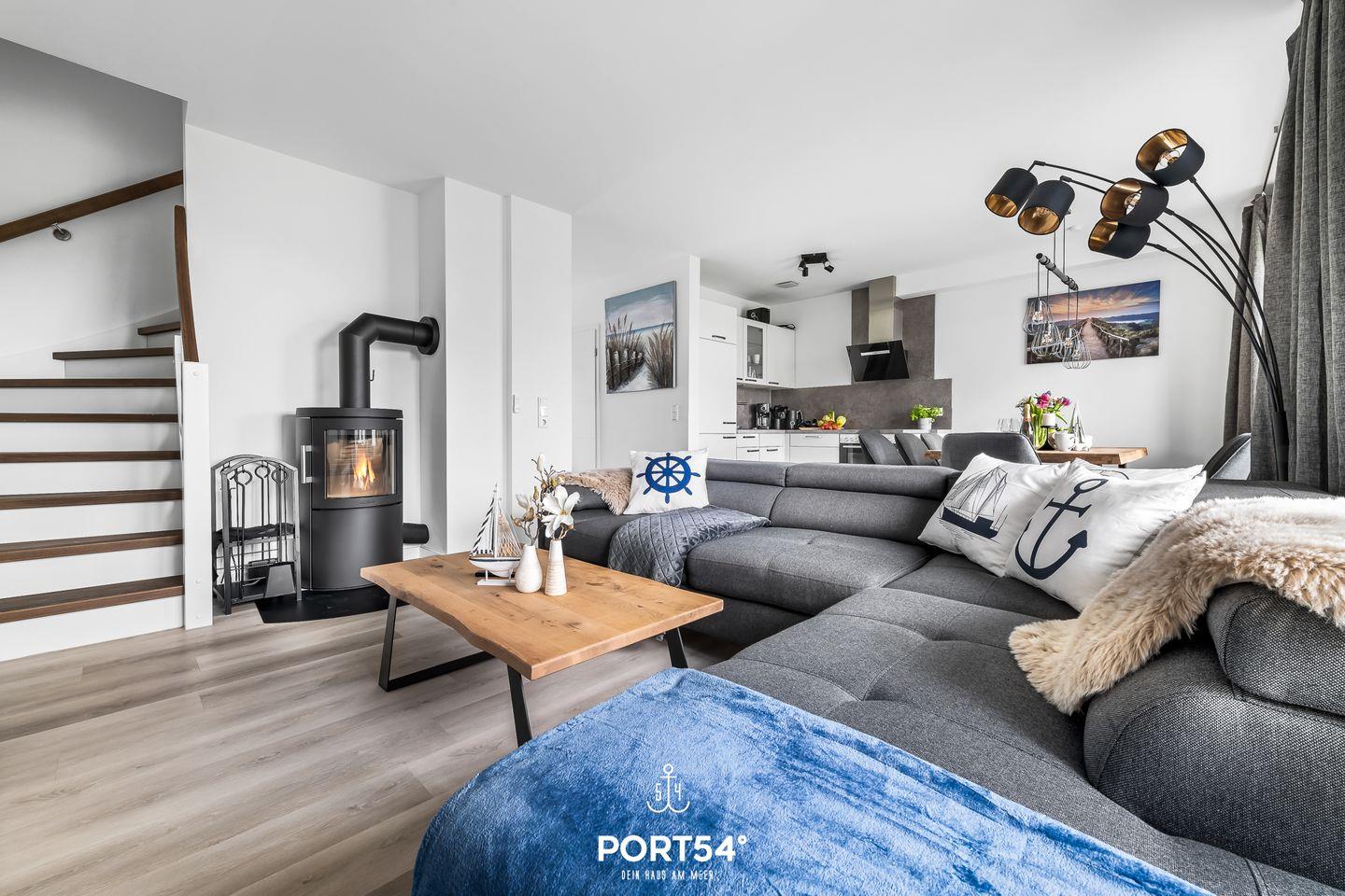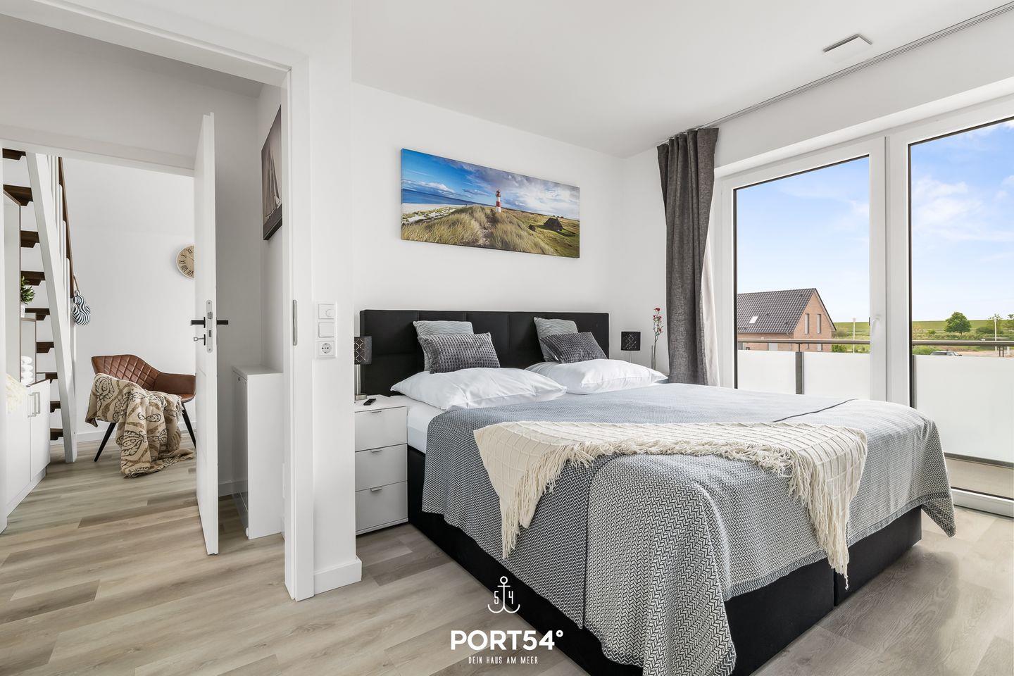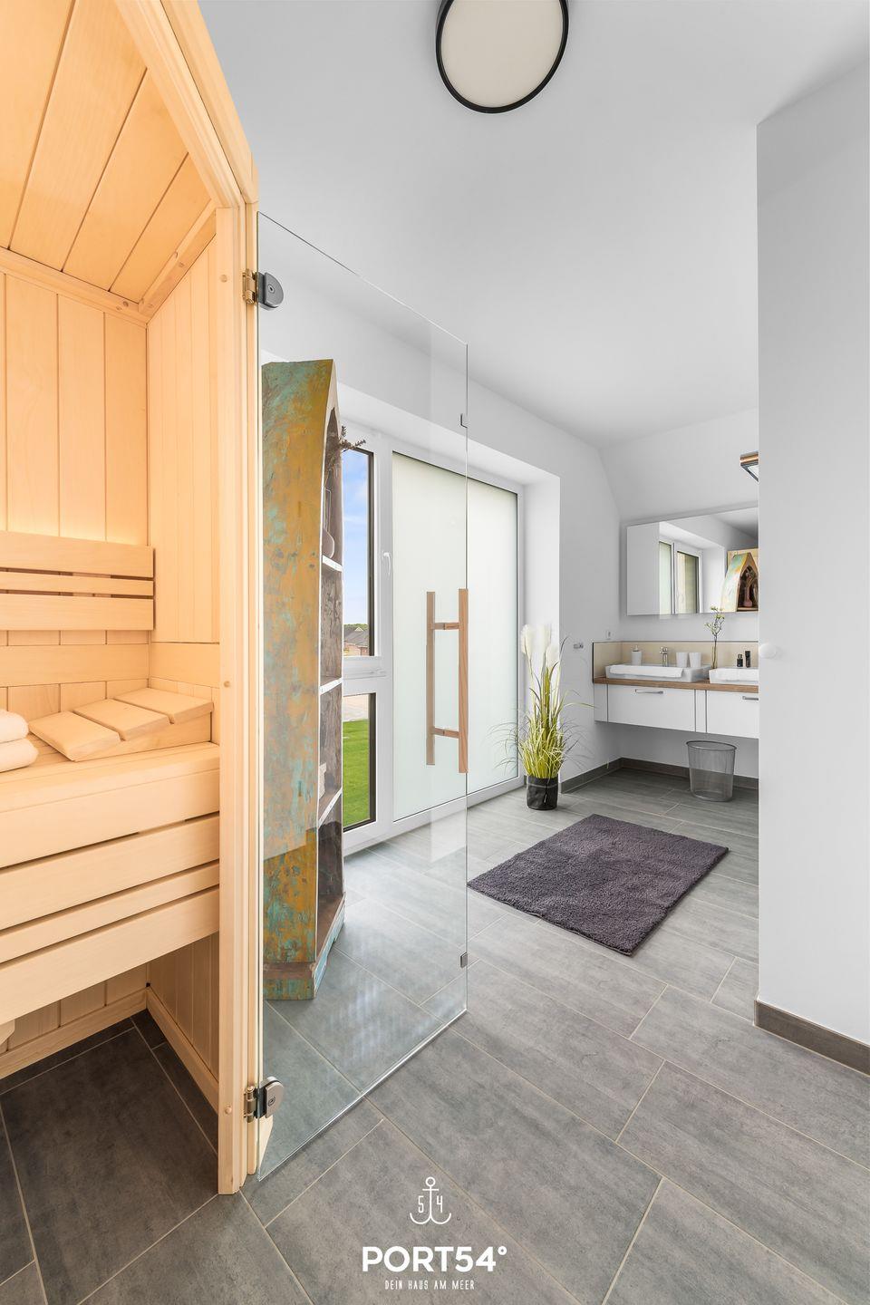 Das Ferienhaus "Die Perle der Bucht", unweit der Nordsee gelegen, bietet auf zwei Etagen und über 126m² Platz für bis zu 6 Personen. Im Erdgeschoss bietet das moderne Ferienhaus einen offenen Wohn- und Essbereich mit angrenzender Küche, ein Schlafzimmer, sowie ein Gäste-WC mit Toilette und Waschbecken. An Schmuddeltagen können Sie es sich vor dem Kamin gemütlich machen und einen Filmabend veranstalten. Der lichtdurchflutete Wohnbereich ist mit einem Sofa ausgestattet, das zu einer Schlafcouch ausgezogen werden kann und noch zwei weitere Schlafplätze bietet. Das Schlafzimmer verfügt über ein Einzelbett (90x200cm) mit ausziehbarem Bettkasten (max. 70 kg), einen Flachbild-TV und Verdunkelungsmöglichkeiten. Das Obergeschoss teilt sich in zwei Schlafzimmer und ein Badezimmer mit ebenerdiger Dusche, Handtuchtrockner sowie WC und Waschbecken auf. Nach langen Strandspaziergängen bietet die finnische Sauna den perfekten Rückzugsort für entspannte Stunden. Beide Schlafzimmer im Obergeschoss sind mit Doppelbetten (180x200cm) eingerichtet. Auch hier sind die Fenster vollverdunkelbar und beide Zimmer verfügen über Flachbild-TV´s.