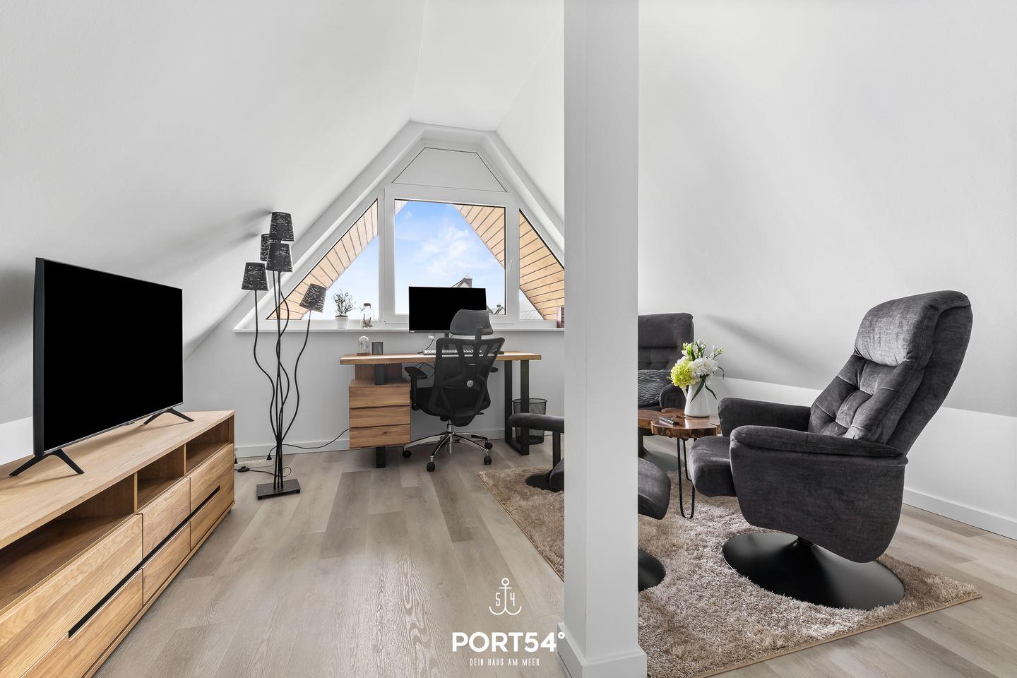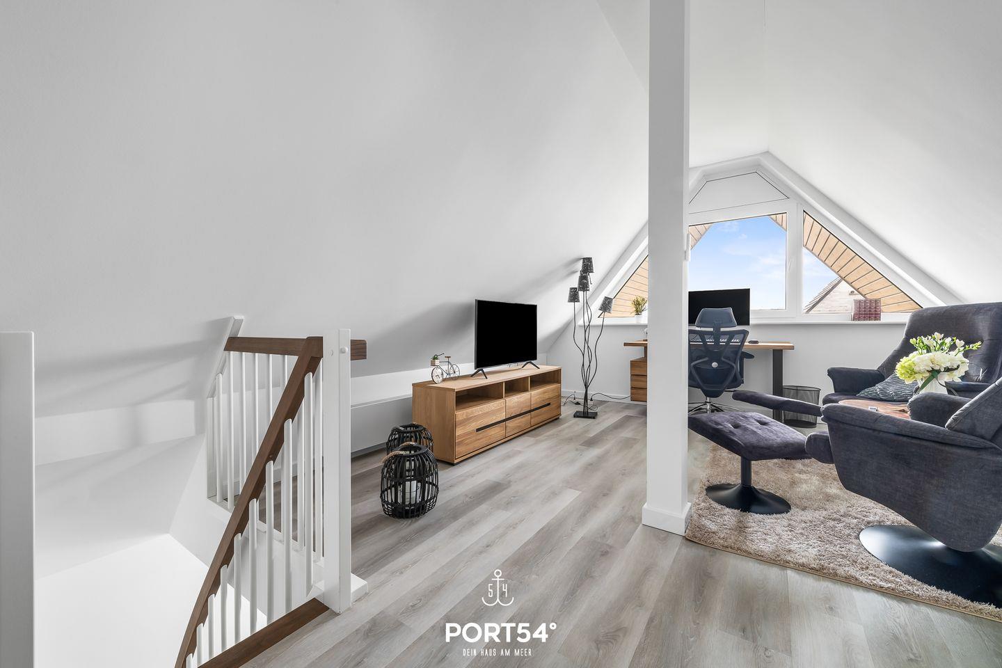 Im Dachgeschoss befindet sich noch ein weiteres Zimmer, das über einen Schreibtisch, Bürostuhl und einen Monitor (Tastatur & Maus) verfügt. Außerdem bietet es einen weiteren Rückzugsort zur Erholung mit zwei verstellbaren Sesseln und Fußhockern. Laue Sommerabende auf der vollmöblierten Terrasse am Elektro-Grill, oder stürmische Nachmittage am Kamin - dieses Haus bietet für jeden den perfekten Ort für einen Nordseeurlaub der Extraklasse. Vor dem Haus steht Ihnen ein kostenfreier Parkplatz zur Verfügung. Mitgebrachte oder vor Ort geliehene Fahrräder, können Sie im abschließbaren Schuppen unterstellen.