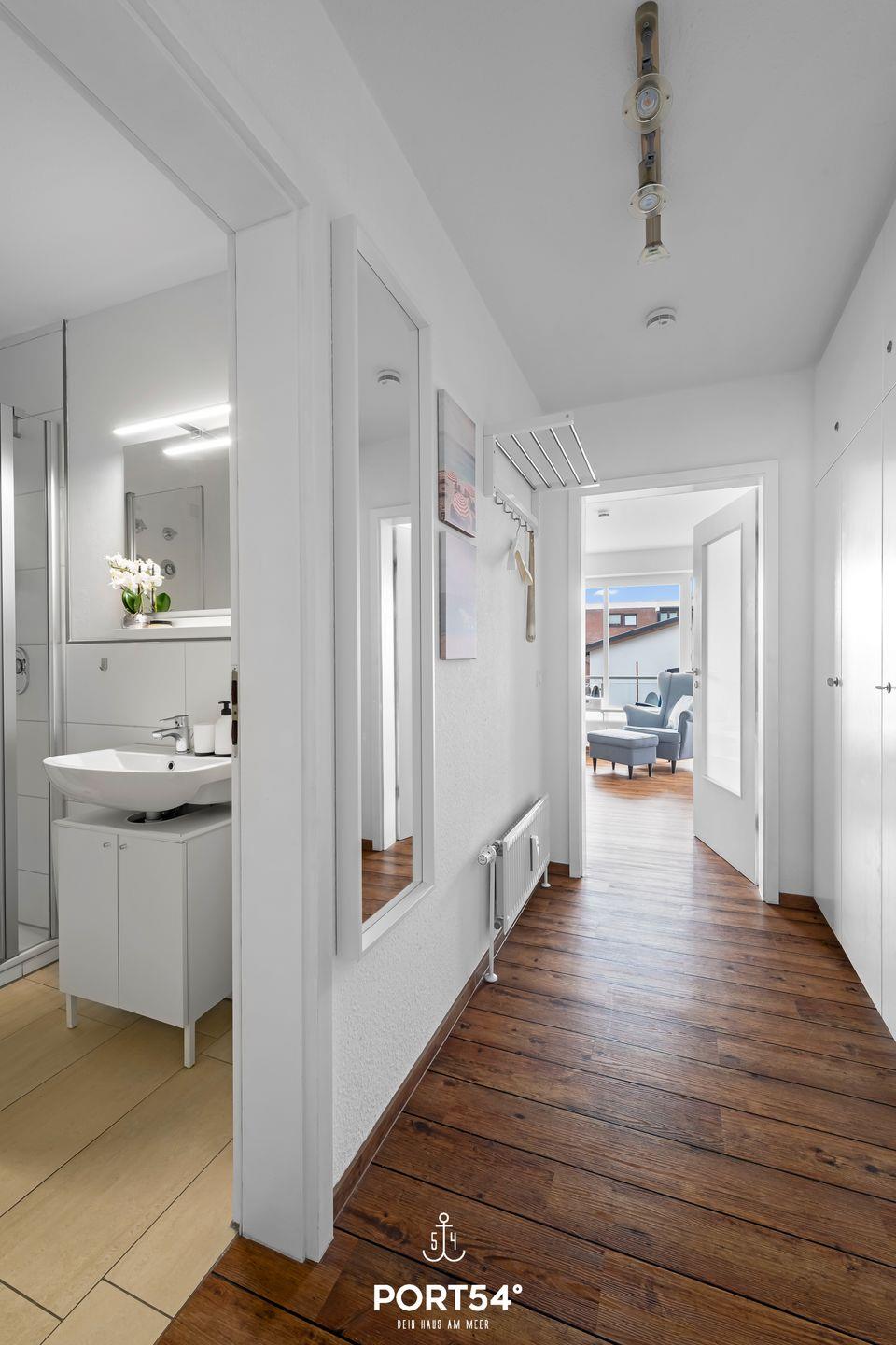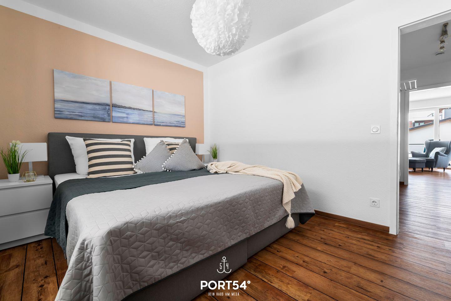 Für bis zu vier Personen bietet die im ersten Obergeschoss gelegene, durch einen Aufzug erreichbare, Wohnung ein gemütliches Schlafzimmer, ein geräumiges Wohnzimmer mit angrenzendem Essbereich und offener Küche, sowie ein Duschbad. Im Schlafzimmer erwartet Sie ein großes Doppelbett (180x200cm). Eine weitere Schlafmöglichkeit für bis zu zwei Personen bietet die Schlafcouch im Wohnbereich (140x200cm). Für eine erholsame Nachtruhe ist das Schlafzimmer mit Verdunkelungsplissees ausgestattet. Für die kleinsten Gäste stehen ein Hochstuhl sowie ein Reisebett zur Verfügung. Mitgebrachte oder vor Ort geliehene Fahrräder können im gemeinschaftlichen, abschließbaren Fahrradschuppen untergestellt werden. Ihren PKW parken Sie kostenfrei in einer mit Schranke gesicherten Tiefgarage. Bitte beachten Sie, dass dort ausschließlich flache Fahrzeuge (1.5m Höhe, keine Busse, SUV´s o.ä.) abgestellt werden können, da es sich um eine Doppelparkfläche handelt und die Parkbox im Boden versenkt wird!