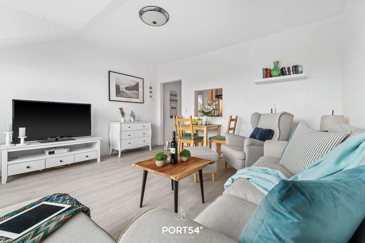 Gemütliche Ferienwohnung Deck 7 in Büsum mit Balkon, ideal für Fahrradtouren und zentral gelegen.