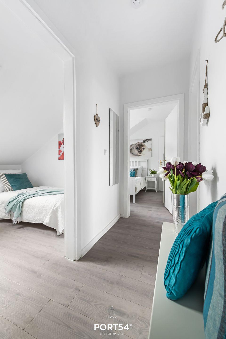 Für bis zu 3 Personen bietet die im 2. Obergeschoss gelegene Wohnung "Deck 7" zwei gemütliche Schlafzimmer, ein geräumiges Wohnzimmer mit angrenzendem Essbereich und offener Küche, sowie ein Duschbad en Suite. Im ersten Schlafzimmer erwartet Sie ein großes Doppelbett (180x200cm) sowie der Zugang zum Duschbad. Bitte beachten Sie, dass das Bad nur durch dieses Schlafzimmer zu erreichen ist. Das zweite Schlafzimmer ist mit einem Einzelbett (90x200cm) ausgestattet. Für eine erholsame Nachtruhe ist das Schlafzimmer mit Verdunkelungsmöglichkeiten ausgestattet. Für die kleinsten Gäste steht ein Hochstuhl sowie ein Reisebett zur Verfügung. Zur Wohnung gehört ein kleiner Balkon mit Tisch und Stühlen. Parkplätze sind für alle Wohnungen am Haus vorhanden. Zusammen mit den anderen Wohnungen können Sie im Fahrradschuppen Ihre mitgebrachten oder vor Ort geliehenen Fahrräder unterstellen. Außerdem befindet sich im gemeinschaftlich genutzten Waschraum eine Waschmaschine und ein Trockner, diese sind gegen eine kleine Gebühr nutzbar. Hinter dem Haus befindet sich eine private Parkfläche, auf welcher Sie Ihren PKW abstellen können.