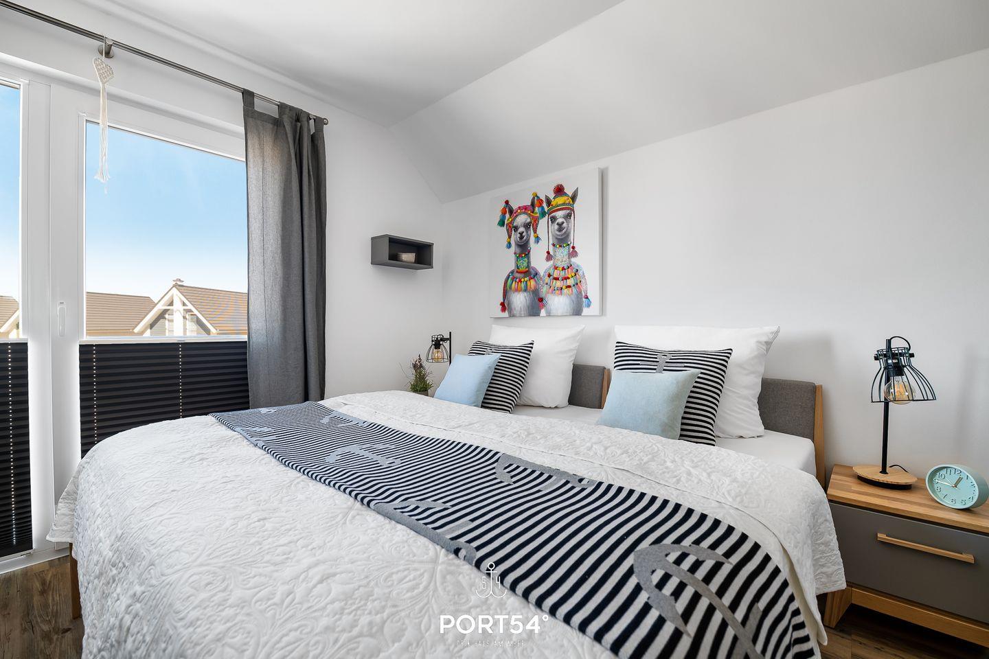 Eine "Kleine Auszeit" bietet die modern und hochwertig eingerichtete Wohnung im Nordsee Resort Büsum. Auf ca. 80m² bietet sie Platz für bis zu 4 Personen. Der Name ist Programm: In dem offenen Wohn-/Essbereich ist ein Kamin zu finden, der bei kalten Wintertagen für einen wohlwärmenden Abend auf dem Sofa sorgt. Der Smart-TV ist für das gute Unterhaltungsprogramm zuständig. Die Wohnung verfügt über zwei Schlafzimmer mit Verdunklungsmöglichkeiten an den Fenstern, eines der Schlafzimmer ist mit einem Doppelbett mit durchgängiger Matratze, das andere mit zwei Einzelbetten ausgestattet und sorgen für einen erholsamen Schlaf. Das Badezimmer mit der Infrarot-Kabine bieten einen weiteren Wellnessfaktor und runden die "Kleine Auszeit" während des Urlaubs perfekt ab. Die Ferienwohnung liegt im Obergeschoss und hat aus dem Wohnzimmer aus einen direkten Zugang zu dem möblierten Balkon, auf dem Sie entweder die Sonne und die Nordseeluft genießen können oder mit einem guten Frühstück in den Tag starten können.