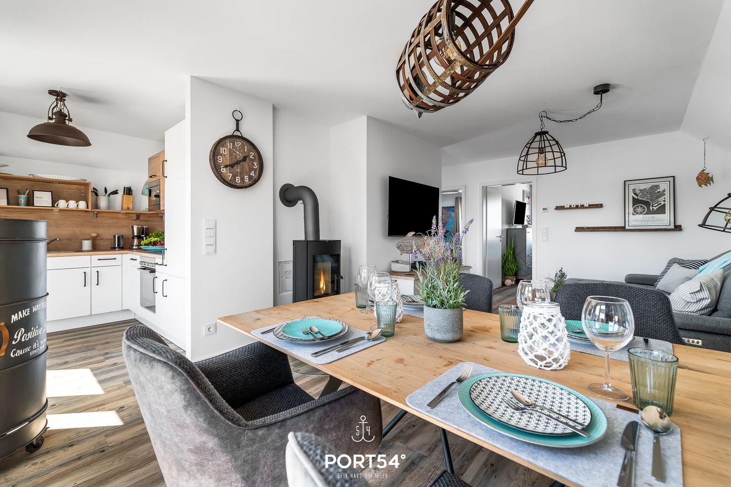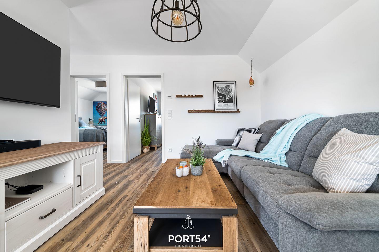 Moderne Ferienwohnung in Büsum mit Infrarotsauna, Balkon und Kamin für entspannte Nordsee-Auszeiten.