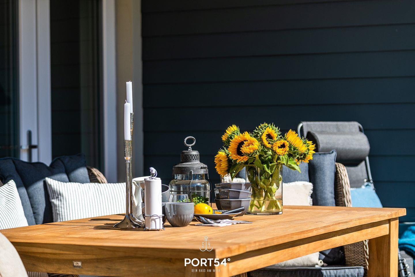 Die Ferienwohnung für 4 Personen wurde im Frühjahr 2022 fertig gestellt und befindet sich im schönen NordseeResort fußläufig zur Familienlagune „Perlebucht“. Im Erdgeschoss gelegen bietet der "Diek No.1" neben zwei Schlafzimmern, einem geräumigen Wohn- und Essbereich, einer Küche, einem Badezimmer auch eine vollmöblierte Sonnenterrasse. Das helle Wohnzimmer bietet auf der gemütlichen Couch die besten Möglichkeiten vor dem Kamin zu entspannen. Auch in der Infrarot-Sauna können Sie sich nach einem langen Strandspaziergang entspannen. Beide Schlafzimmer sind mit Doppelbetten (je 180x200cm) ausgestattet. Durch die vollverdunkelbaren, mit Insektenschutz ausgestatteten Fenster steht einer erholsamen Nachtruhe nichts im Wege. In der vollausgestatteten Küche lassen sich gesellige Kochabende veranstalten. Für die kleinen Gäste steht ein Hochstuhl und ein Kinderreisebett zur Verfügung. Auch Ihre Fellnasen sind herzlich Willkommen! Entspannte Sommertage oder laue Sommerabende - auf der vollmöblierten Terrasse ist für jeden etwas dabei. Auf dem Elektro-Grill kann man sich auch unter freiem Himmel bestens versorgen. Vor der Unterkunft steht ein kostenfreier Parkplatz zur Verfügung. Mitgebrachte oder vor Ort ausgeliehene Fahrräder können im abschließbaren Fahrradschuppen direkt vor dem Haus untergestellt werden.