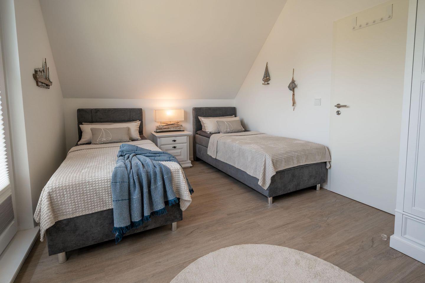 Herzlich Willkommen im Ferienhaus "Haus Dünenglück'' Das Ferienhaus bietet Platz für bis zu 4 Erwachsene und 1 Kleinkind und verfügt auf zwei Etagen über 88m² Wohnfläche. Die Wohnfläche teilt sich in ein geräumiges Wohnzimmer mit Essbereich, separater Küche, zwei Schlafzimmer und zwei Badezimmer auf. Der offene Wohn-Essbereich mit großer Fensterfront und Zugang zur Terrasse hat einen schönen Essbereich sowie ein gemütliches Sofa, von dem Sie entspannt ein Buch lesend den Kindern beim Spielen zuschauen oder einen Film auf dem großen Flachbild-Fernseher schauen können. Der Kamin im Wohnbereich bietet mollige Wärme an kalten Tagen oder nach einem ausgiebigen Spaziergang an der Nordsee. Nach langen Wattwanderungen oder bei stürmischen Nordsee Tagen können Sie sich in der Infrarot-Sauna wieder aufwärmen und die Seele baumeln lassen. In der umfangreich ausgestatteten Küche finden Sie alles, was Sie für den nächsten Kochabend brauchen. In den beiden Schlafzimmern im Obergeschoss finden 4 Personen bequem Platz, um einen schönen Urlaubstag in Büsum ausklingen zu lassen. Ein Schlafzimmer ist mit einem Doppelbett (180x200cm) ausgestattet, das zweite mit zwei Einzelbetten (je 90x200cm). Beide Schlafzimmer verfügen über Flatscreen-TV's und Verdunkelungsmöglichkeiten. Das Badezimmer im Erdgeschoss bietet eine Dusche sowie eine Infrarot-Sauna. In der ersten Etage befindet sich ein Vollbad mit Badewanne. Wir freuen uns auch auf Familien mit Kindern! Es gibt extra einen Kinderhochstuhl, ein Babybett, DVD's, Bücher und Gesellschaftsspiele. Die schöne Terrasse lädt zum gemütlichen Verweilen und Grillen ein. Ihre mitgebrachten oder ausgeliehenen Fahrräder, sowie einen Kinderwagen können Sie im abschließbaren Fahrradschuppen direkt vor dem Haus unterstellen. Vor dem Haus befindet sich ein kostenfreier Parkplatz.