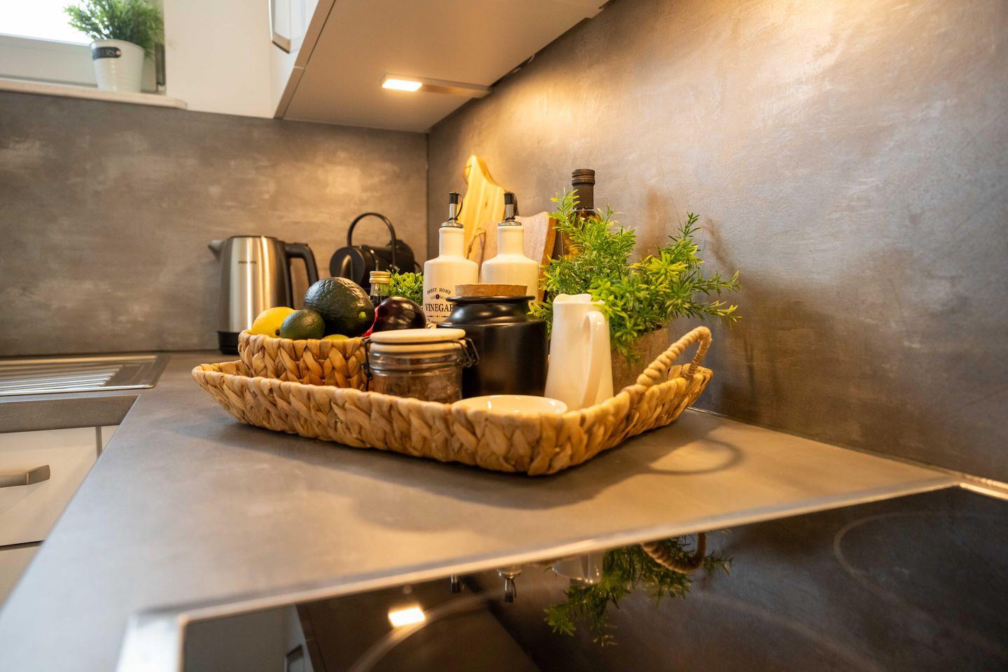Der offene Wohn- und Essbereich mit Zugang zur Terrasse bietet einen Kaminofen. Die separate Küche ist voll ausgestattet. In den 2 Schlafzimmern im Obergeschoss sind ein Doppelbett und 2 Einzelbetten. Das Duschbad im EG bietet eine Infrarot-Sauna. Im OG befindet sich ein Vollbad. Die Terrasse lädt zum Verweilen und Grillen ein. Ein abschließbarer Fahrradschuppen und ein PKW-Stellplatz sind vorhanden.