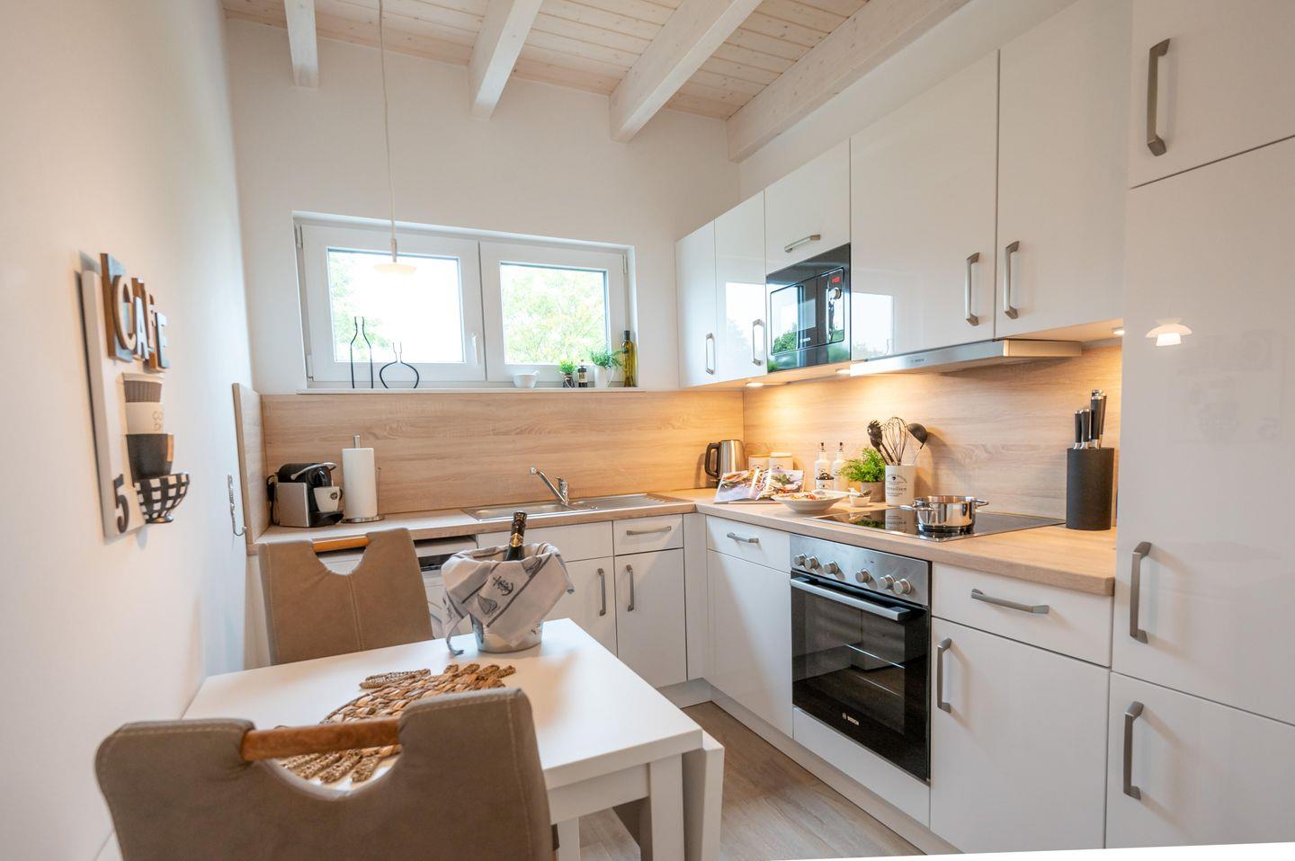Der offenen Wohn- und Essbereich mit angrenzender, vollausgestatteter Küche bietet einen Zugang zur möblierten Terrasse mit Grill. Eines der beiden Schlafzimmer verfügt über ein Doppelbett, das andere über zwei Einzelbetten. Auf der Schlafcouch im Wohnzimmer finden zusätzlich zwei Personen Platz. Das Duschbad im EG verfügt über eine Infrarot-Sauna. Im OG steht Ihnen ein Wannenbad zur Verfügung. Ein Parkplatz und ein abschließbarer Fahrradschuppen gehören zum Haus.