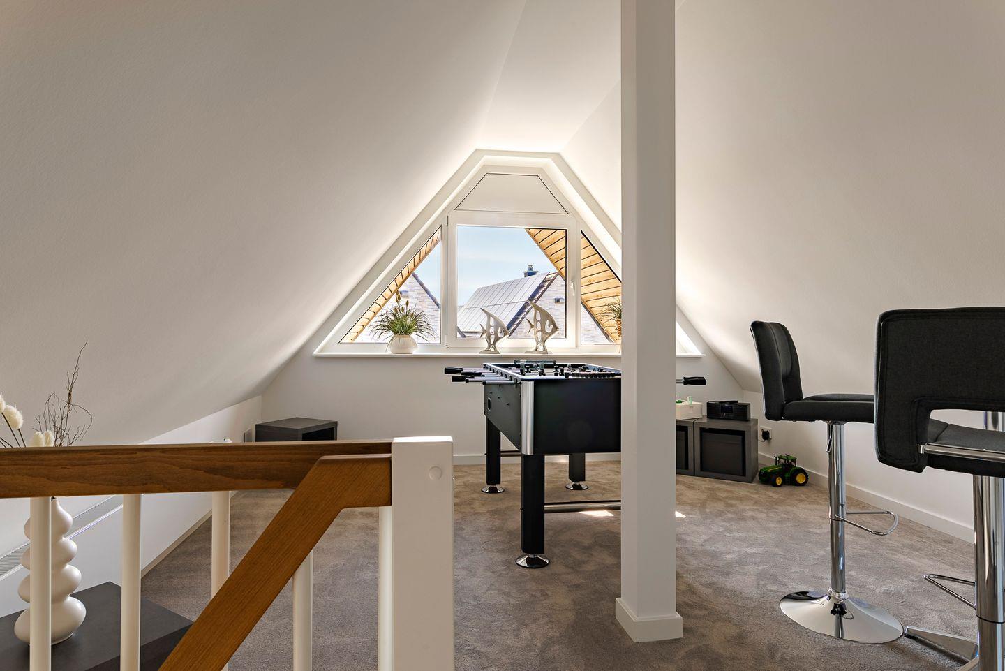 Luxuriöses Ferienhaus Berg-Ahorn nahe Nordsee mit Sauna, Terrasse, Balkon und Parkplatz.