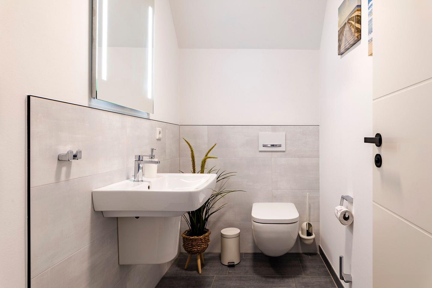 Luxus Nordseeurlaub direkt hinter dem Deich? Das und vieles mehr bietet das Ferienhaus "Haus Traubeneiche" für bis zu 6 Personen. Über zwei Etagen bietet das Ferienhaus auf etwa 120m² neben drei Schlafzimmern auch zwei Badezimmer, einen großen, lichtdurchfluteten Wohn- und Essbereich mit offener Küche, eine Terrasse und eine Loggia im Obergeschoss. Das im Erdgeschoss gelegene Schlafzimmer verfügt über ein Doppelbett (180x200cm), ebenso die die im Obergeschoss gelegenen Schlafzimmer (160x200cm und 180x200cm). Alle drei Schlafzimmer sind mit einem Flachbild-TV ausgestattet, sowie vollständig verdunkelbar, sodass der Nachtruhe nichts im Wege steht. Das Duschbad im Obergeschoss überzeugt durch eine finnische Sauna, eine Badewanne sowie eine große Dusche und ein separates WC. In der finnischen Sauna kann nach langen Spaziergängen herrlich entspannt werden. Im Badezimmer im Erdgeschoss bietet eine zweite Dusche eine durchdachte räumliche Trennung zum unteren Schlafzimmer. Die in Süd-West-Ausrichtung ausgelegte vollmöblierte Terrasse, sowie die mit zwei Stühlen und einem Tisch ausgestattete Loggia im ersten Obergeschoss bieten zu fast jeder Tageszeit den perfekten Ort für entspannte Sonnenstunden. In der Abendsonne lassen sich perfekte Grillabende am Elektrogrill verbringen. Vor dem Haus steht ein kostenfreier, eigener Parkplatz und ein Fahrradschuppen zur Verfügung. Weitere PKW können an der Straße in Parkbuchten abgestellt werden. Ab Januar 2024 verfügt Ihr Parkplatz über eine E-Ladesäule, an welcher Sie Ihren PKW kostenpflichtig laden können.