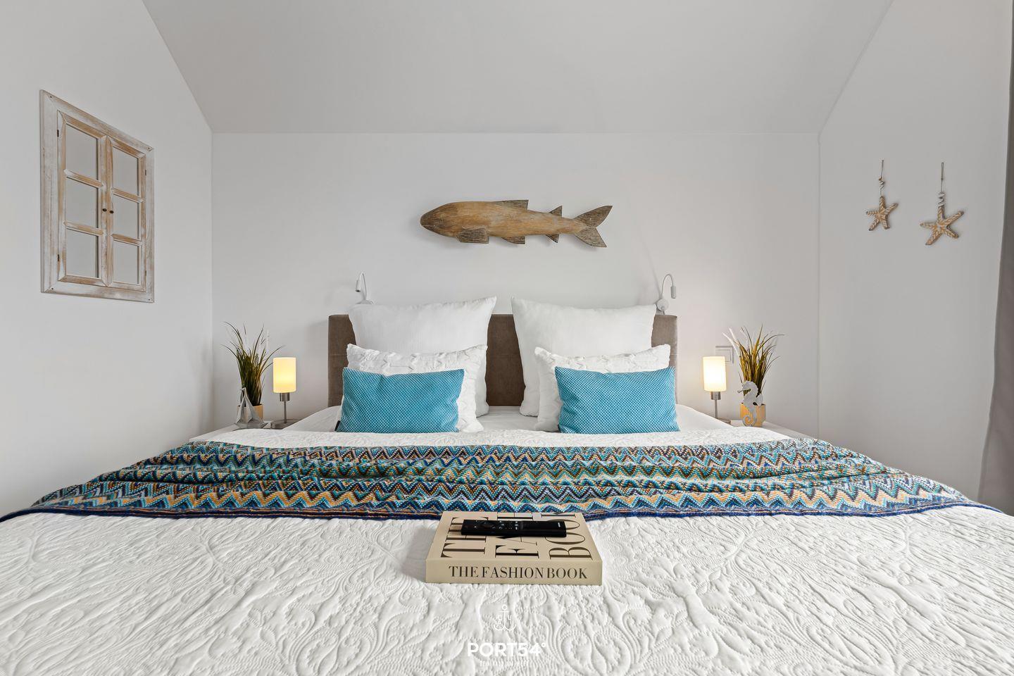 Willkommen im "Dock 40" in Büsum! Die Ferienwohnung bietet auf 80m² einen offenen Wohn- und Essbereich mit Küche, zwei Schlafzimmer, ein Badezimmer und einen Balkon. In dem gemütlichen Wohnbereich können Sie es sich auf dem Sofa vor dem Smart-TV mit Magenta-TV bequem machen oder auch spannende Spieleabende veranstalten. Der Kamin sorgt für eine mollige Wärme und eine heimelige Atmosphäre. In der vollausgestatteten Küche können Sie leckere Gerichte zaubern oder Kuchen backen. Für unsere kleinen Gäste steht ein Hochstuhl und ein Kinderbett zur Verfügung. Das eine der beiden Schlafzimmer ist mit einem bequemen Doppelboxspringbett (180x200cm) ausgestattet und das andere bietet zwei, bei Bedarf zusammenschiebbare, Einzelboxspringbetten (je 90x200cm). Für erholsamen Schlaf sind Verdunkelungsmöglichkeiten sowie Insektengitter vorhanden. Beide Zimmer verfügen außerdem über Smart-TV´s mit Magenta TV. Im Badezimmer finden Sie neben einer ebenerdigen Dusche und einem Kosmetikspiegel auch einen Föhn und einen Handtuchtrockner vor. Und das absolute Highlight: eine Infrarotsauna! Erholung pur nach langen Strandspaziergängen oder auch einfach um dem Alltagsstress zu entfliehen und mal so richtig entspannen zu können. Über die Wohn- und Essbereich gelangen Sie auf den möblierten Balkon mit großem Sonnenschirm, wo Sie Ihren Morgenkaffee genießen können. An lauen Sommerabenden können Sie auf dem Weber-Elektrogrill schmackhafte Köstlichkeiten zubereiten. In dem abschließbaren Fahrradschuppen können mitgebrachte oder ausgeliehene Fahrräder (Lademöglichkeit für E-Bikes vorhanden) untergestellt werden. Direkt an der Wohnung befindet sich ein kostenfreier Parkplatz, hier ist eine E-Ladesäule ab Frühjahr 2024 verfügbar. Ihre Fellnase ist natürlich auch herzlich Willkommen.