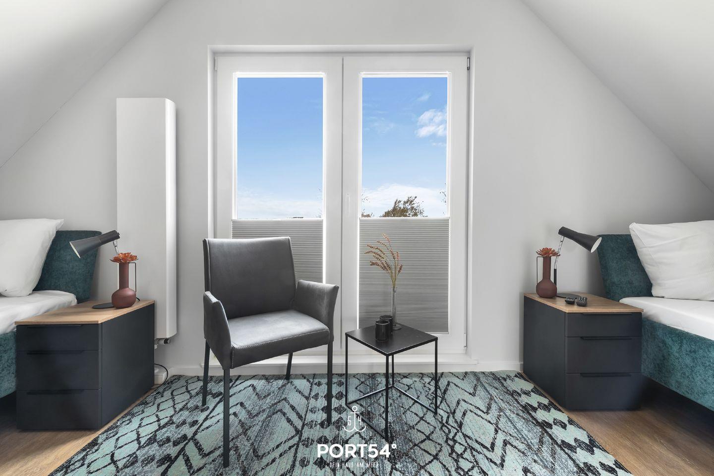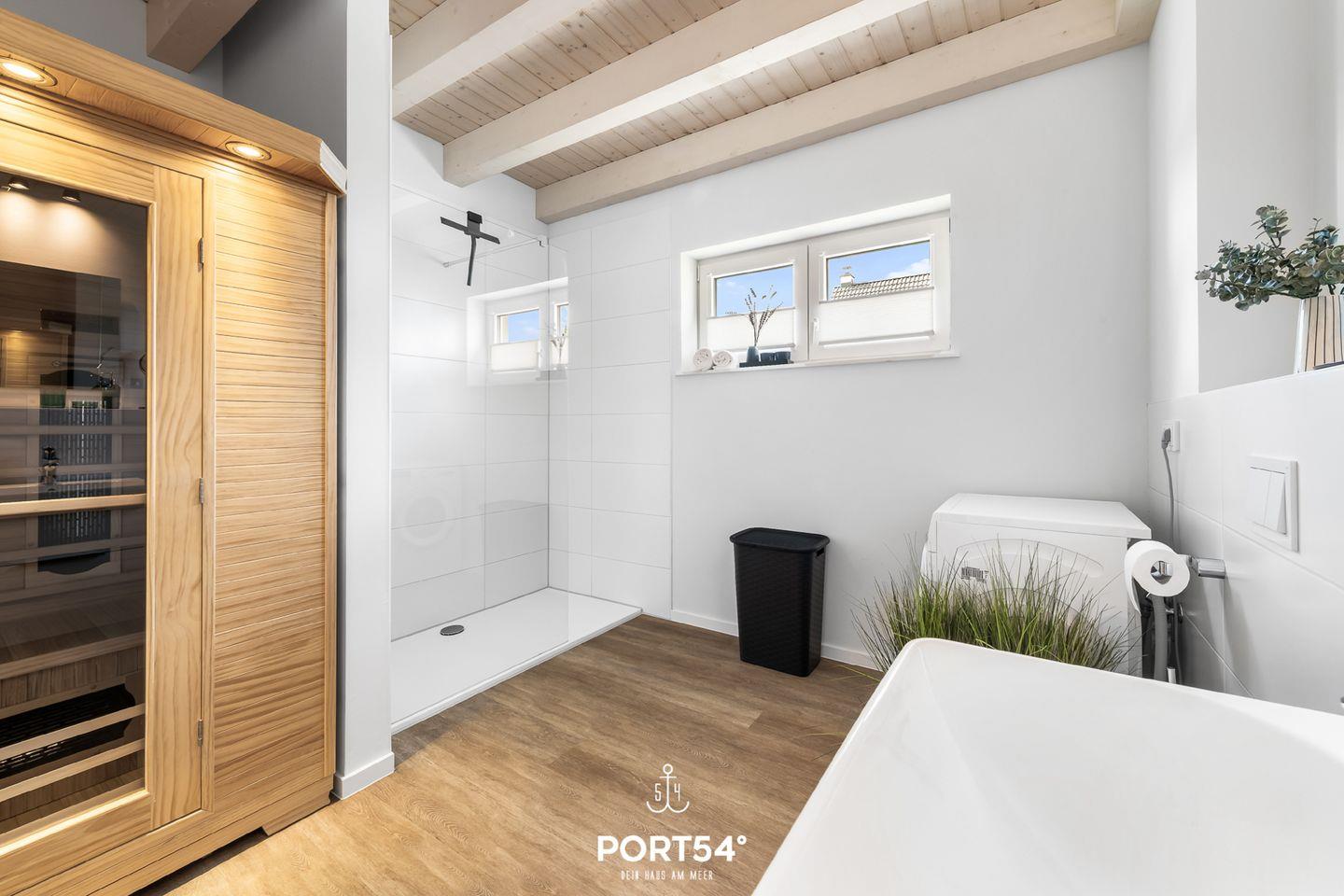 Das großzügige Ferienhaus "Meerglück" bietet auf ca. 107m² den perfekten Ort für einen erholsamen Nordseeurlaub für die ganze Familie. Das Ferienhaus erstreckt sich über zwei Etagen. Insgesamt gibt es drei Schlafzimmer, zwei Badezimmer sowie eine offene Küche mit angrenzendem Wohn- und Essbereich. Das im Erdgeschoss gelegene Schlafzimmer sorgt mit einem Doppelbett (180x200cm) für eine angenehme Nachtruhe. Im Obergeschoss stehen Ihnen zwei weitere Schlafzimmer mit einem Doppelbett (180x200cm) und zwei Einzelbetten (je 90x200cm) zur Verfügung. Für einen kleinen Wellness-Urlaub sorgt die Infrarot-Sauna des Badezimmers im Erdgeschoss oder die Badewanne des Badezimmers im Obergeschoss. Nach stürmischen Strandspaziergängen kann es sich die ganze Familie vor dem Kamin auf der großen Couch bequem machen. Für das passende Unterhaltungsprogramm sorgen die Streaming-Dienste. Die möblierte Terrasse lässt sich nicht nur zum Sonnenbaden oder lieber im Schatten des Sonnenschirms, sondern auch für laue Sommerabende am Holzkohlegrill, perfekt nutzen. Mitgebrachte oder vor Ort ausgeliehene Fahrräder können im abschließbaren Fahrradschuppen direkt vor dem Haus untergestellt werden.