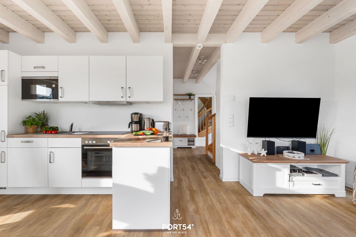 Starten Sie Ihren Urlaub im wunderschönen Ferienhaus "Seestern". Das Ferienhaus erstreckt sich mit einer Wohnfläche von ca. 108m² auf zwei Etagen und eignet sich für einen Urlaub mit bis zu 8 Personen. Die Wohnfläche teilt sich in ein geräumiges Wohnzimmer mit Essbereich, drei Schlafzimmer und zwei Bäder auf. Der offene Wohn- und Essbereich mit großem Fenster verfügt über einen Massivholz Esstisch, an dem Sie bei einem guten Frühstück in den Tag starten können, sowie eine gemütliche Couch (mit Schlaffunktion) und einen Sessel, sodass Sie entspannt auf den großen Fernseher mit Magenta TV schauen können. An einem kalten Abend können Sie das knisternde Feuer aus dem Kaminofen in wohliger Atmosphäre genießen. Einen lustigen Spieleabend vor der Konsole macht die Nintendo Switch möglich. Kostenfreies WLAN steht Ihnen zur Verfügung. In der umfangreich ausgestatteten Küche finden Sie neben Filterkaffee- und Nespresso-Maschine auch einen Wasserkocher, Toaster sowie eine Mikrowelle und eine eingebaute Spülmaschine. In zwei Schlafzimmern finden Sie je ein großes Boxspringbett (je 180x200cm) vor. In einem dieser beiden Zimmer steht zudem ein Schlafsessel bereit und eines der beiden Schlafzimmer befindet sich im Erdgeschoss. Im dritten Zimmer laden zwei Einzelbetten (je 90x200cm) zu erholsamen Nächten ein, eins davon bietet dazu ein Ausziehbett. Alle drei Schlafzimmer verfügen zudem über einen Flachbild-TV mit Magenta TV. Das Badezimmer im Erdgeschoss bietet eine Infrarot-Wärmekabine und ein Waschtrockner. In der ersten Etage finden Sie ein Vollbad mit Badewanne vor. Für die kleinen Gäste gibt es zwei Kinderreisebetten, einen Hochstuhl sowie eine Treppensicherung. Dank der Terrasse mit den passenden Gartenmöbeln und einem Grill steht Ihren Grillabenden nichts mehr im Wege. Oder Sie genießen einfach nur die Sonne und die frische Nordseeluft. Ihre mitgebrachten oder ausgeliehene Fahrräder, sowie einen Kinderwagen, können Sie im abschließbaren Fahrradschuppen direkt vor dem Haus unterstellen. Zwei PKW-Parkplätze stehen kostenfrei direkt vor der Unterkunft zur Verfügung.