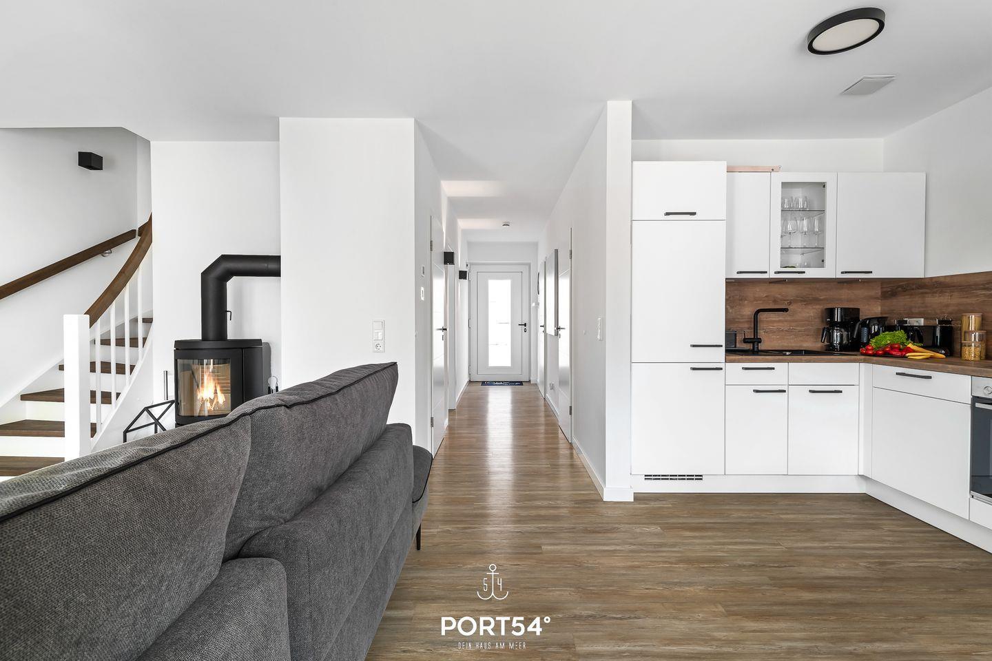Im EG befinden sich ein Schlafzimmer mit Doppelbett, ein Bad mit ebenerdiger Dusche und der offene Wohn- & Essbereich mit Kaminofen, angrenzender Küche und Zugang zur Terrasse. Das OG erwartet Sie mit 2 weiteren Schlafzimmern mit Boxspring-Doppelbetten, sowie einem Vollbad mit finnischer Sauna. Vor dem Haus stehen Ihnen ein kostenfreier Parkplatz, sowie ein abschließbarer Fahrradschuppen zur Verfügung.