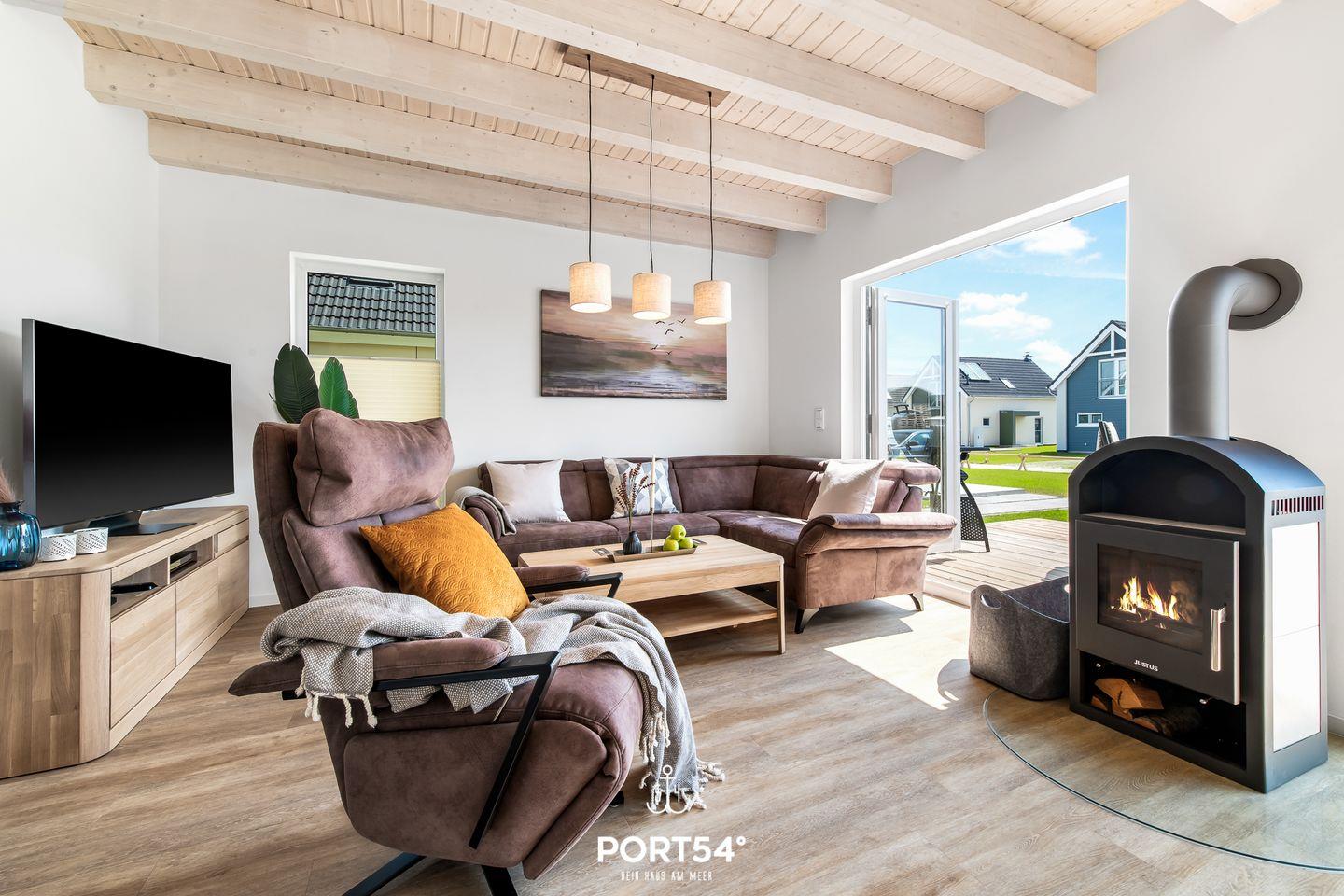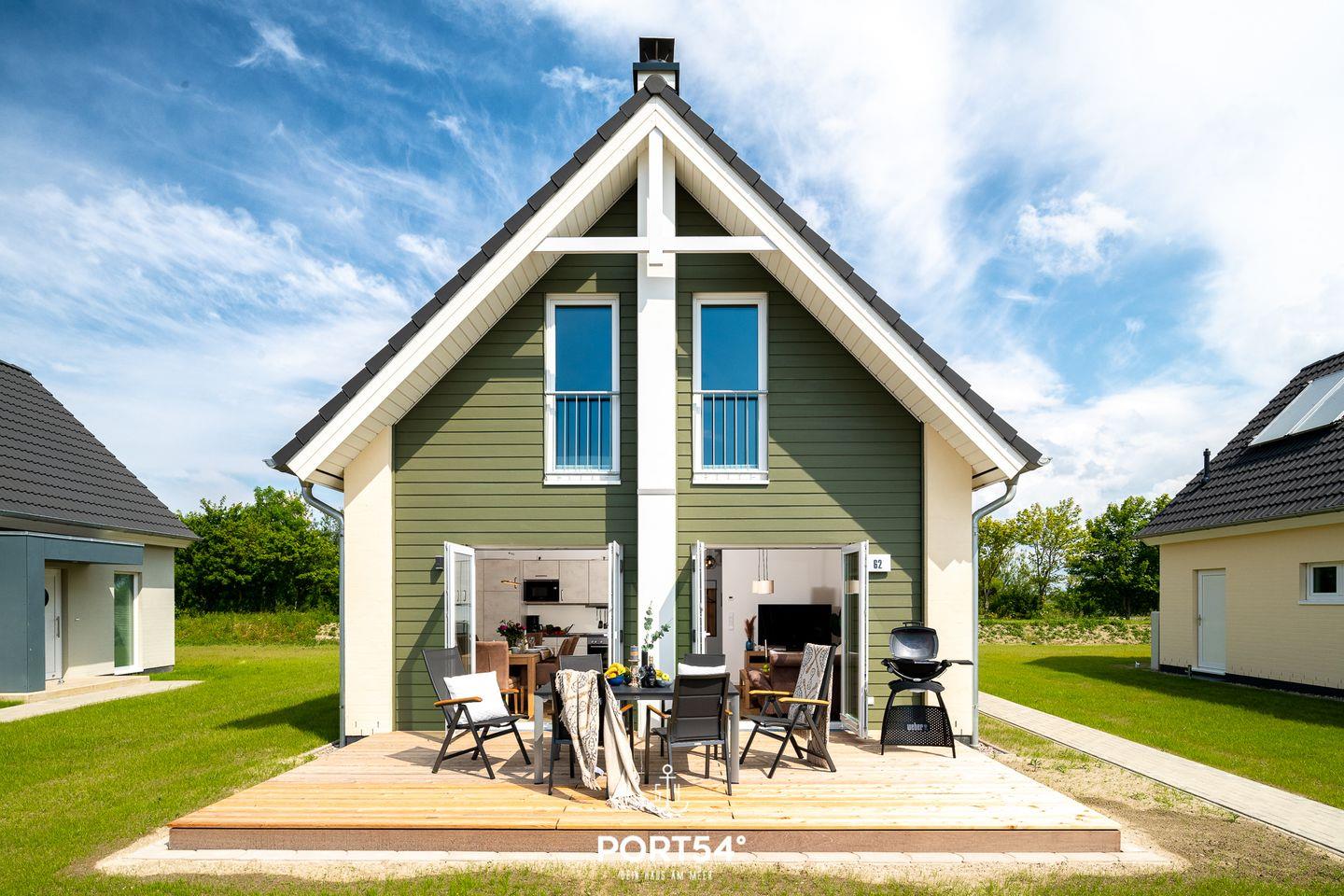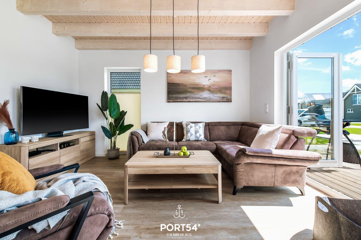 Modernes Ferienhaus Jakobsmuschel nahe Nordsee mit Sauna, Terrasse und gemütlichem Ambiente.