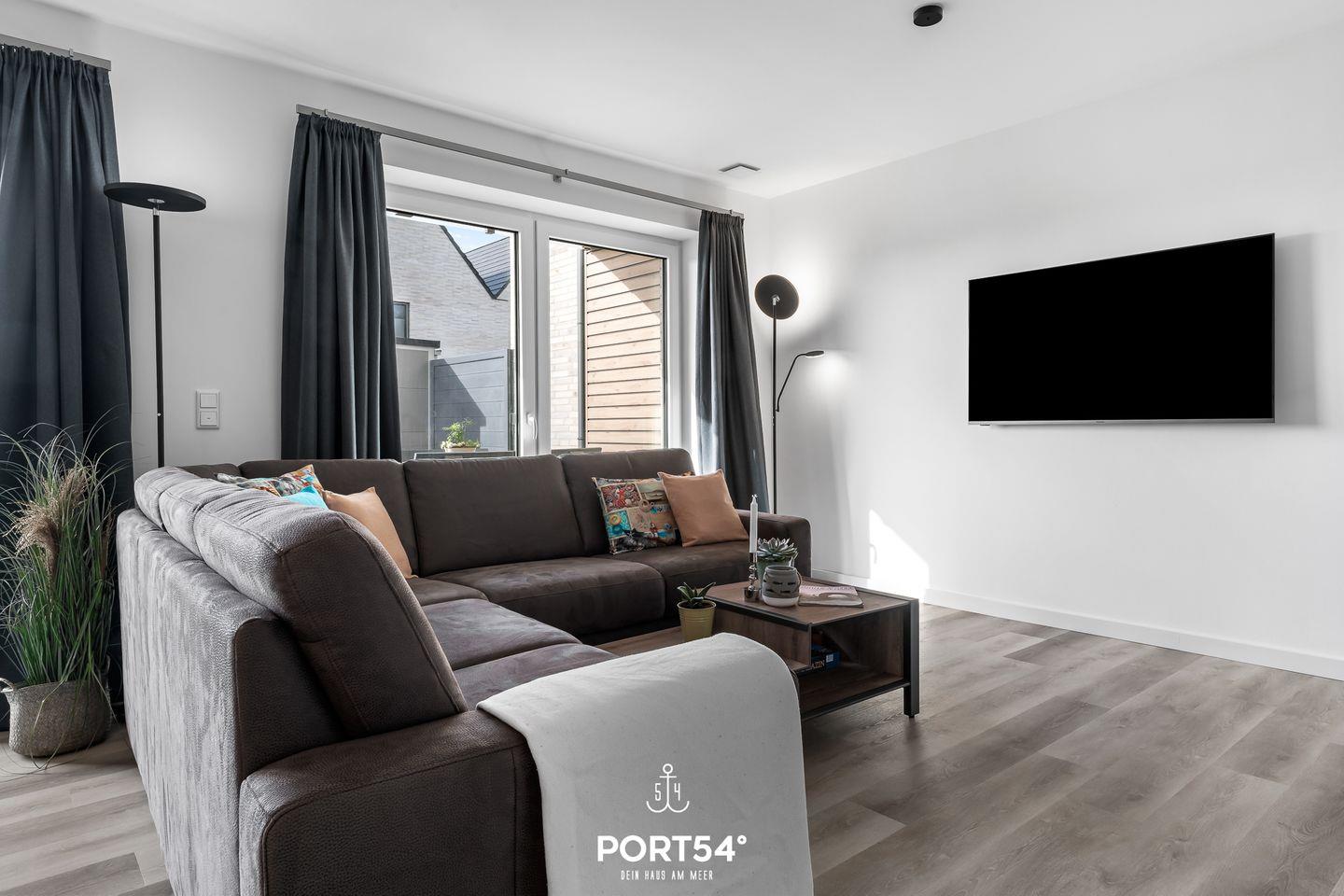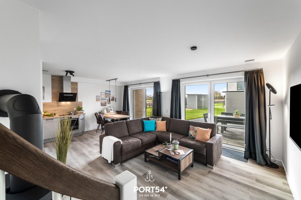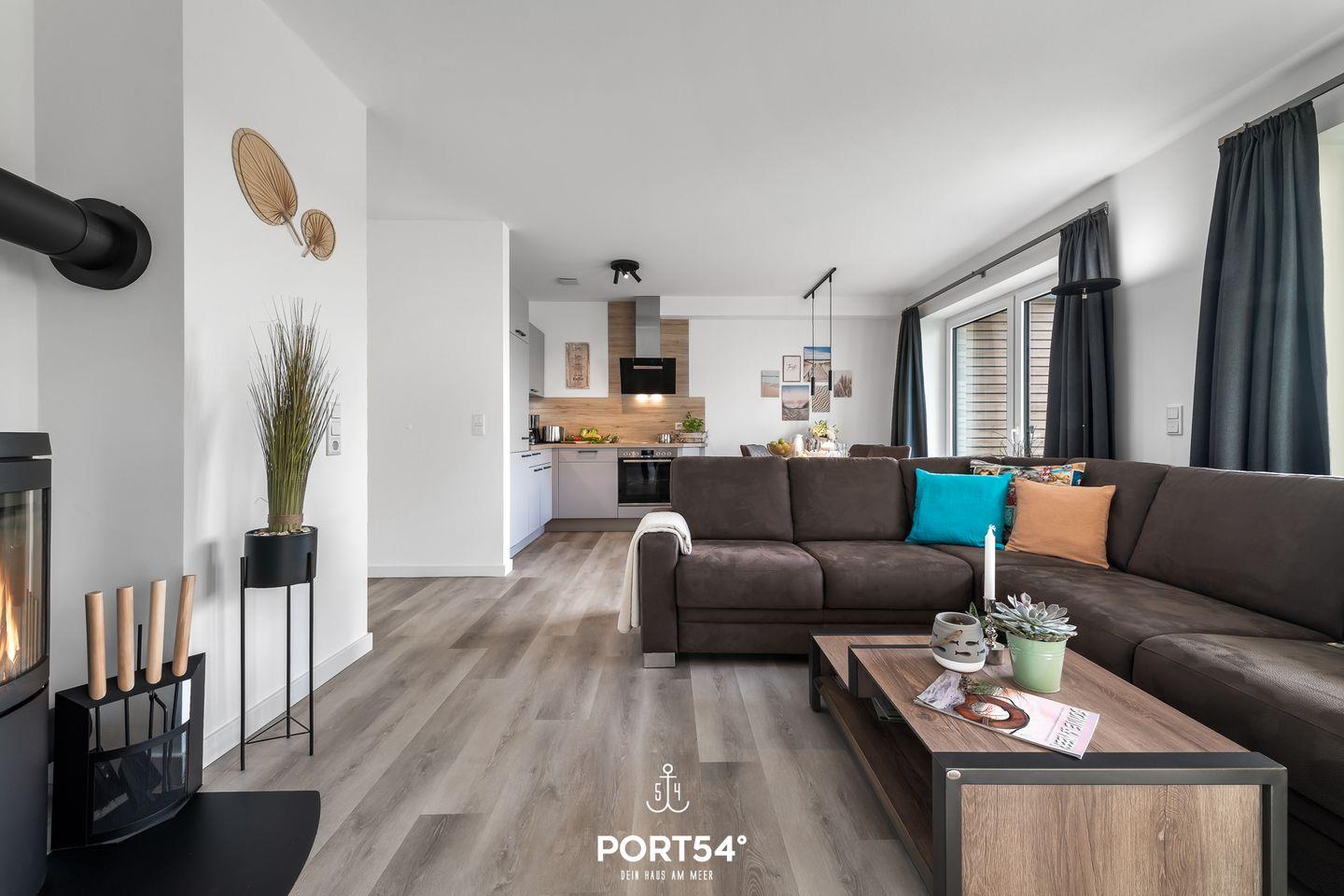 Über zwei Etagen bietet das Ferienhaus auf etwa 120m² neben drei Schlafzimmern auch zwei Badezimmer, einen großen, lichtdurchfluteten Wohn- und Essbereich mit offener Küche, eine Terrasse und eine Loggia im Obergeschoss. Ankommen und Wohlfühlen! Im Erdgeschoss bietet das moderne Ferienhaus einen offenen Wohn- und Essbereich mit angrenzender Küche. Die gut ausgestattete Küche bietet eine Geschirrspülmaschine, einen Kühlschrank mit Gefrierfach, ein Induktionskochfeld sowie einen Backofen. Hier finden Sie alles für den nächsten Kochabend. An kalten Tagen können Sie es sich vor dem Kamin gemütlich machen.