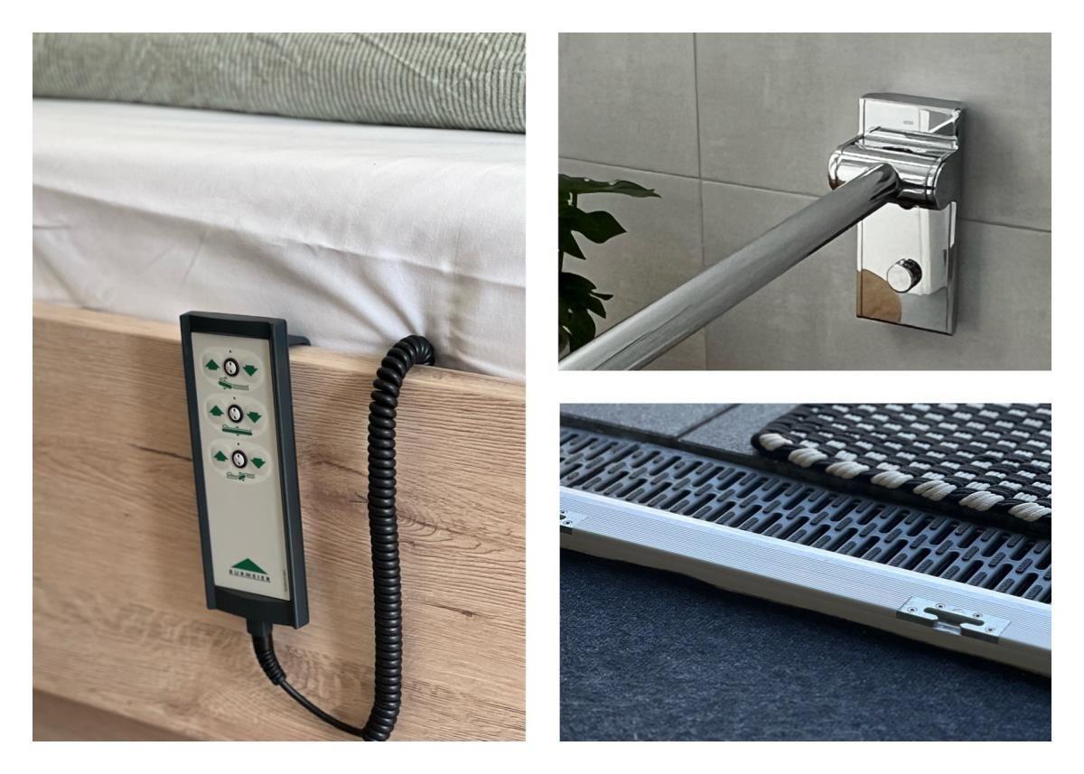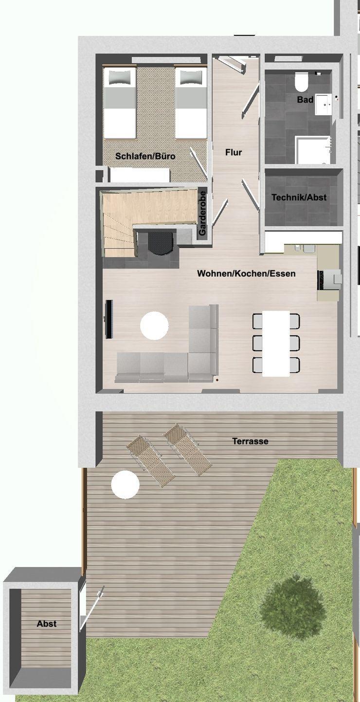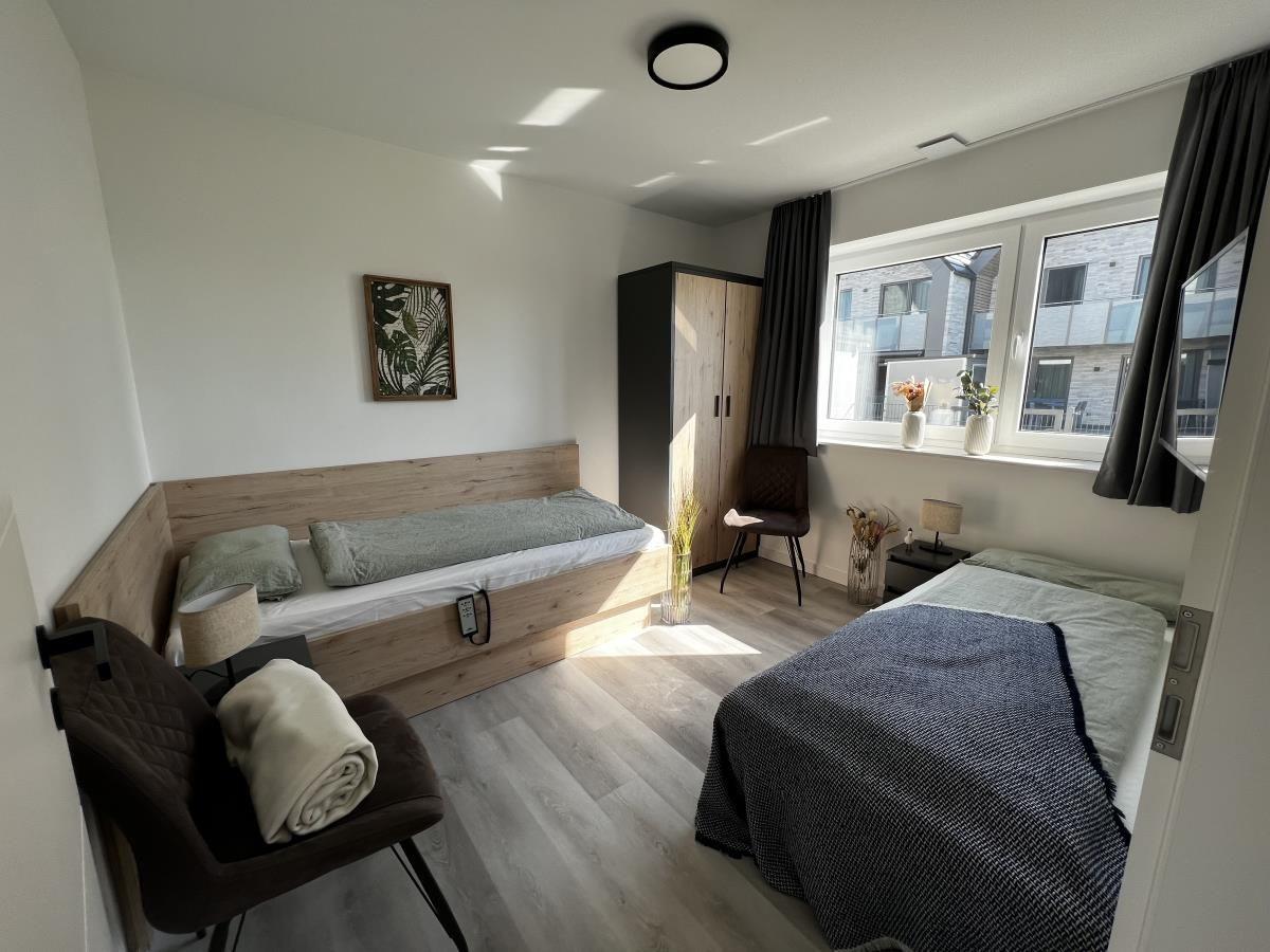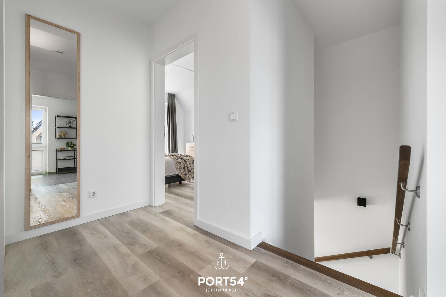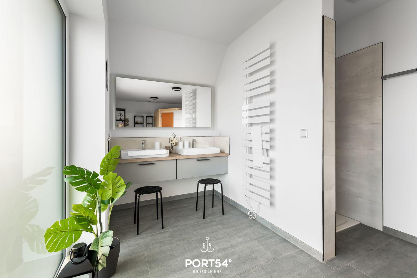 Das im Erdgeschoss gelegene Schlafzimmer verfügt über ein Einzelbett, welches sich in der Höhe verstellen lässt. Ebenfalls kann eine Absturzsicherung mit genutzt werden. Zusätzlich steht bei Bedarf ein Zustellbett für eine weitere Schlafmöglichkeit zu Verfügung. Außerdem ist das Zimmer mit einem Flachbild-TV ausgestattet. Die im Obergeschoss gelegenen Schlafzimmer bieten zwei Doppelbetten (160x200cm) & (180x200cm), beide verfügen ebenfalls über einen Flachbild-TV. Das Duschbad im Obergeschoss überzeugt durch eine Finnische Sauna, eine Badewanne sowie eine große Dusche und ein separates WC. In der finnischen Sauna können Sie nach langen Spaziergängen herrlich entspannen und die Seele baumeln lassen. Im Badezimmer im Erdgeschoss bietet eine zweite Dusche eine durchdachte räumliche Trennung zum unteren Schlafzimmer.