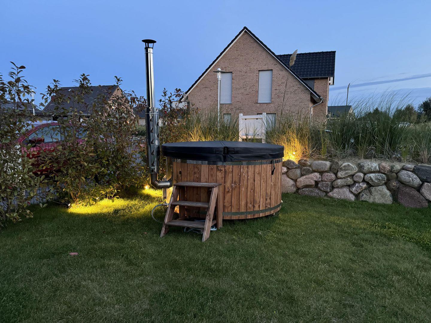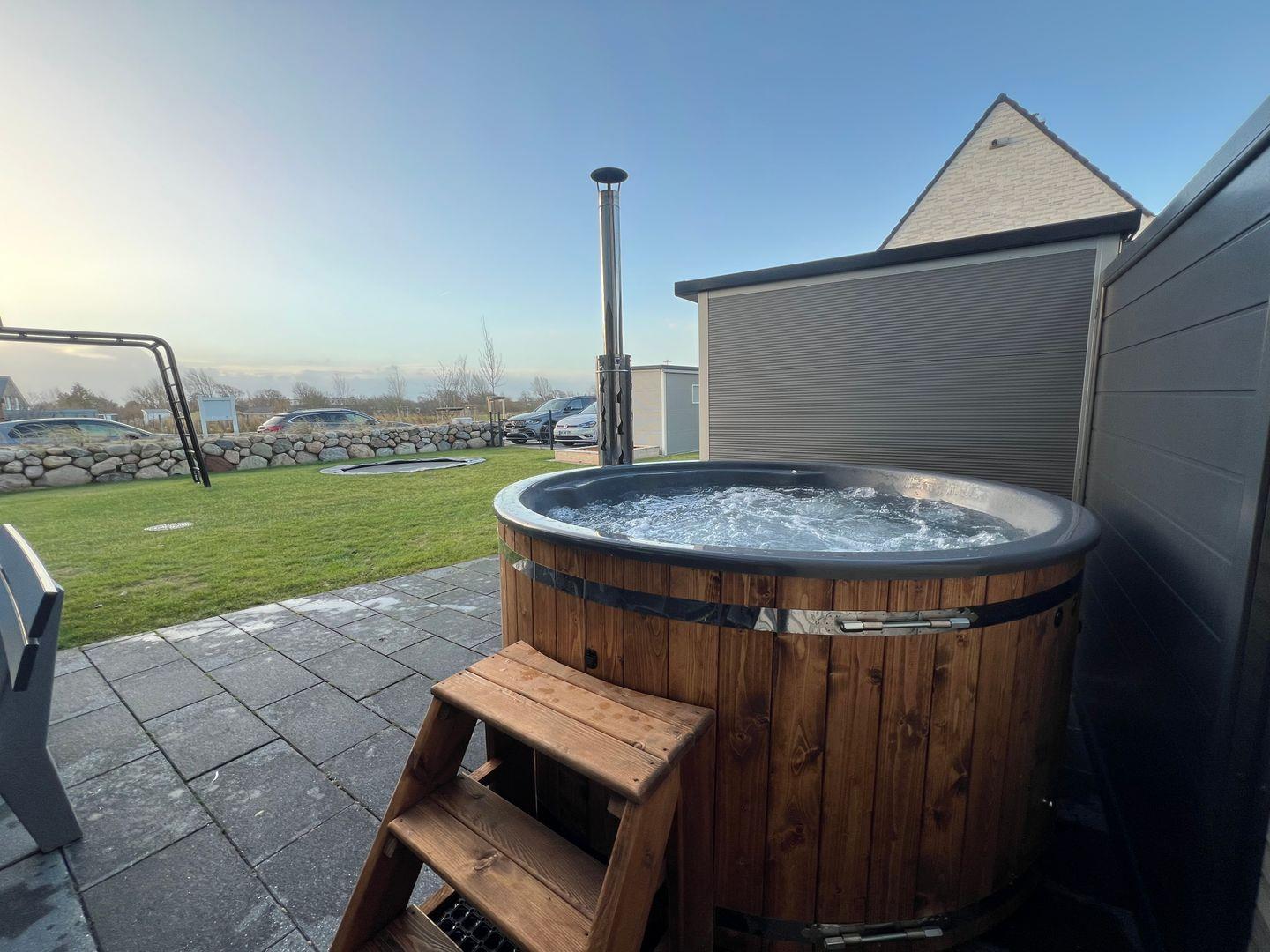 Den Gästen steht ein Hot Tub / Whirlpool zur Verfügung und bietet Platz für mindestens vier Personen. Das Befüllen sowie das Ablassen des Wassers werden vollständig vorbereitet, sodass der Hot Tub nutzungsbereit übergeben wird. Lediglich das Anfeuern erfolgt durch den Gast selbst, mit eigenem mitgebrachtem Holz. Bitte beachten Sie, dass die Nutzung des Hot Tubs eine Zusatzleistung ist und vorab gebucht werden muss.