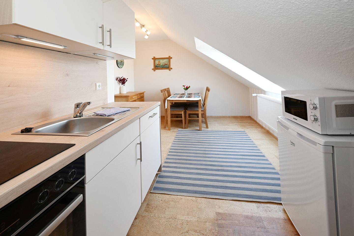 Damit Sie auch im Urlaub der Leidenschaft zum Kochen nachkommen können, finden Sie eine komplett ausgestattete Küche mit Geschirrspüler, Mikrowelle und Backofen.