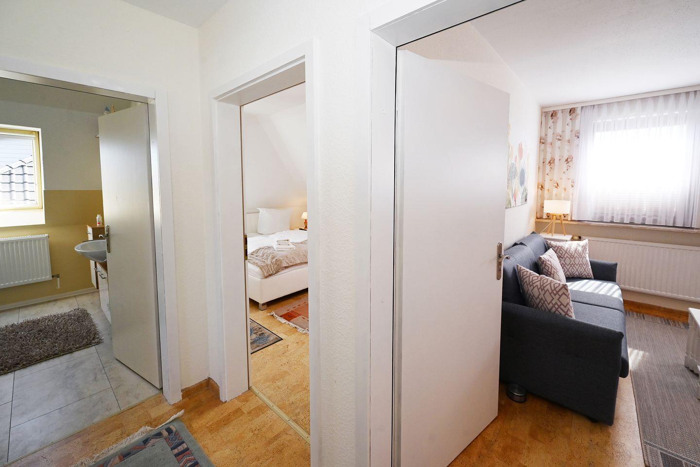 Die 2-Raum Ferienwohnung befindet sich im 1. Obergeschoss in Haus Neumann.