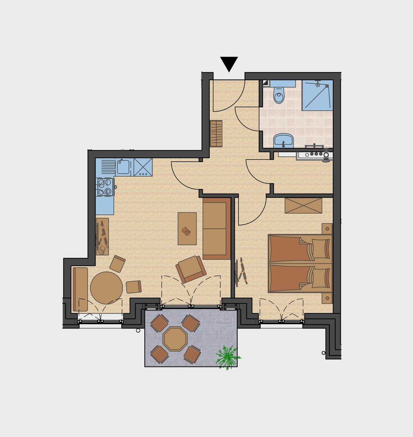 Modernes Apartment im Binnendiek Resort Büsum mit Terrasse und hochwertiger Ausstattung für ein entspanntes Urlaubsgefühl.