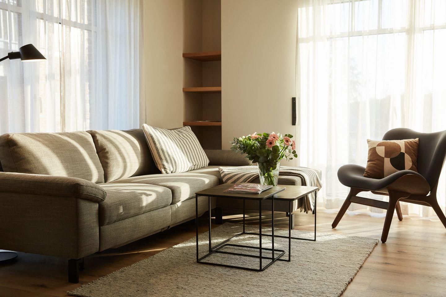 Auf rund 64 Quadratmetern finden vier Gäste Ihr kleines Urlaubsrefugium mit einer modernen und hochwertigen Ausstattung. Genießen Sie das entspannte Ambiente im lässigen Industrial Style, das gleichzeitig jede Menge Cozyness versprüht. Zusätzlich sorgen schallisolierte 3-fach verglaste Fenster und eine Fußbodenheizung für maximale Behaglichkeit.
