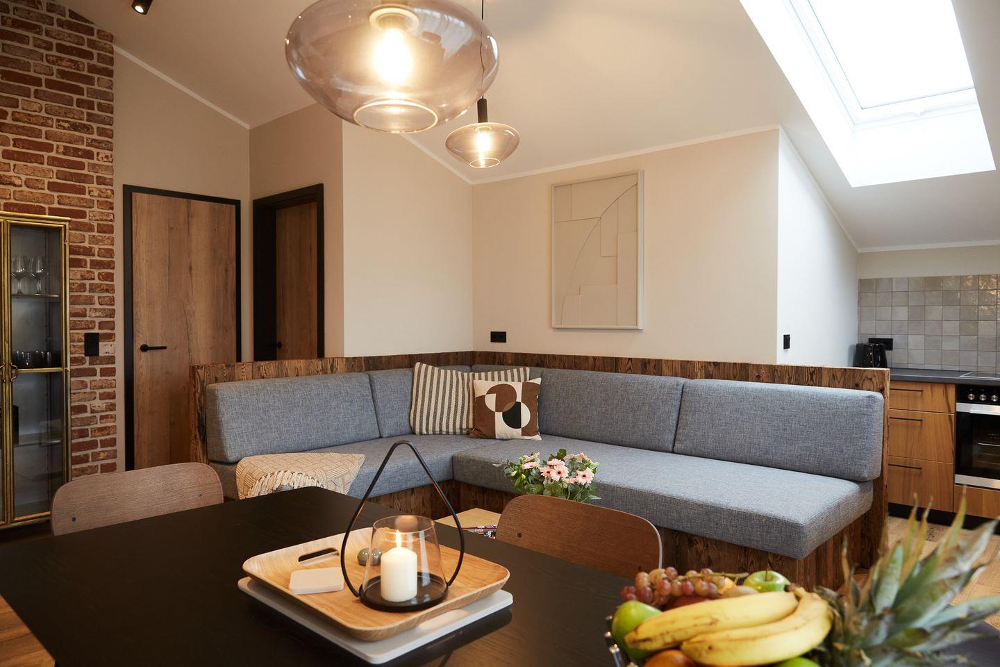 Auf rund 76 Quadratmetern finden vier Gäste Ihr kleines Urlaubsrefugium mit einer modernen und hochwertigen Ausstattung. Genießen Sie das entspannte Ambiente im lässigen Industrial Style, das gleichzeitig jede Menge Cozyness versprüht. Zusätzlich sorgen schallisolierte 3-fach verglaste Fenster und eine Fußbodenheizung für maximale Behaglichkeit.