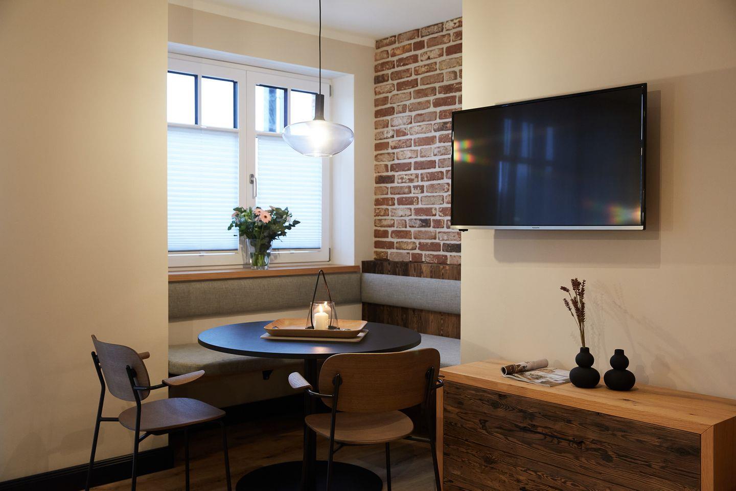 Auf rund 48 Quadratmetern finden zwei Gäste Ihr kleines Urlaubsrefugium mit einer modernen und hochwertigen Ausstattung. Genießen Sie das entspannte Ambiente im lässigen Industrial Style, das gleichzeitig jede Menge Cozyness versprüht. Zusätzlich sorgen schallisolierte 3-fach verglaste Fenster und eine Fußbodenheizung für maximale Behaglichkeit.