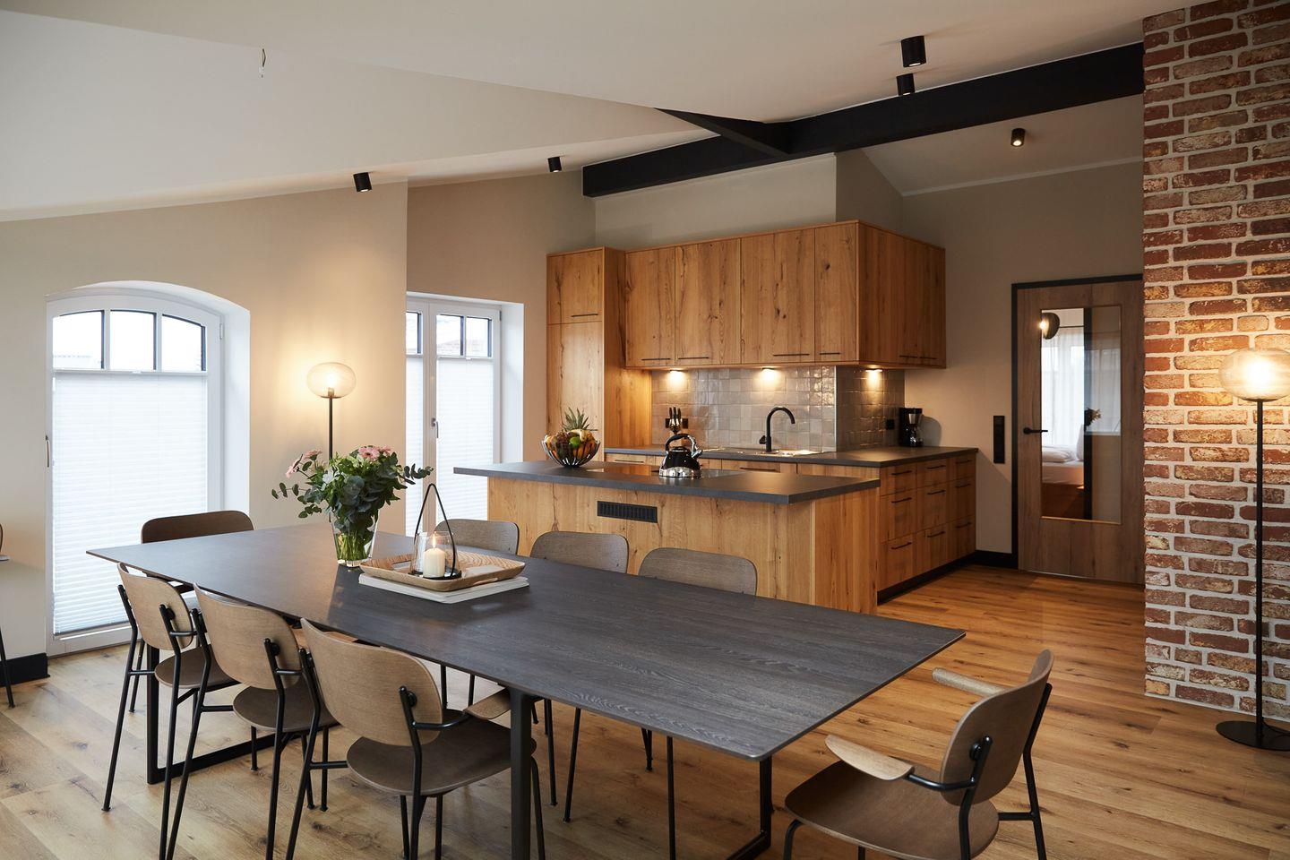 Auf rund 129 Quadratmetern finden acht Gäste Ihr kleines Urlaubsrefugium mit einer modernen und hochwertigen Ausstattung. Genießen Sie das entspannte Ambiente im lässigen Industrial Style, das gleichzeitig jede Menge Cozyness versprüht. Zusätzlich sorgen schallisolierte 3-fach verglaste Fenster und eine Fußbodenheizung für maximale Behaglichkeit.