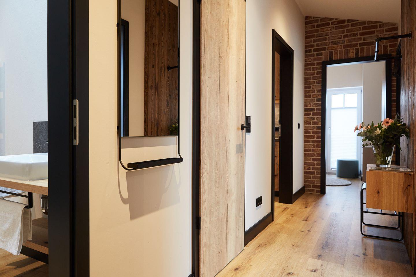 Auf rund 129 Quadratmetern finden acht Gäste Ihr kleines Urlaubsrefugium mit einer modernen und hochwertigen Ausstattung. Genießen Sie das entspannte Ambiente im lässigen Industrial Style, das gleichzeitig jede Menge Cozyness versprüht. Zusätzlich sorgen schallisolierte 3-fach verglaste Fenster und eine Fußbodenheizung für maximale Behaglichkeit.