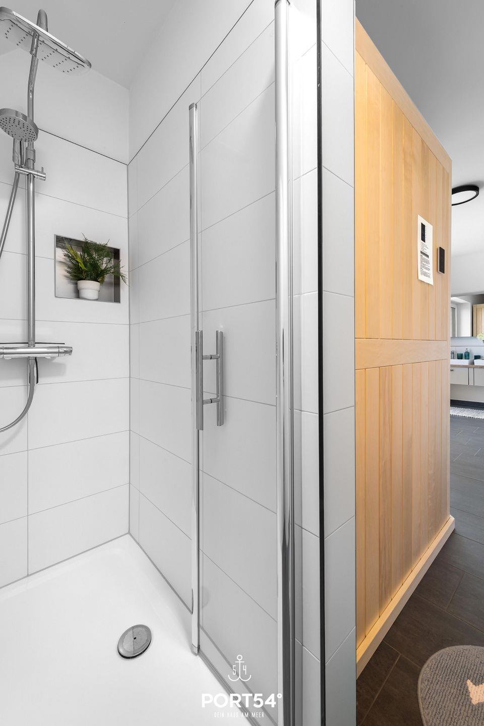 Das neue, hochwertig ausgestattete Ferienhaus "Wellenrauschen", unweit der Nordsee gelegen, bietet auf zwei Etagen und über 106m² Platz für bis zu 5 Personen. Im Erdgeschoss bietet das moderne Ferienhaus einen offenen Wohn- und Essbereich mit angrenzender Küche, ausgestattet unter anderem mit einem Induktionsherd. Des Weiteren sind auch noch ein Schlafzimmer, sowie ein Gäste-WC mit Toilette und Waschbecken vorhanden. Das im EG gelegene Schlafzimmer verfügt über ein gemütliches Schlafsofa (140x200cm) - voll verdunkelbare Fenster bieten eine erholsame Nachtruhe. Das Obergeschoss teilt sich in zwei Schlafzimmer und ein Badezimmer mit ebenerdiger Dusche, sowie separatem WC und Waschbecken auf. Nach langen Strandspaziergängen bietet die finnische Sauna den perfekten Rückzugsort für entspannte Stunden. Beide Schlafzimmer im Obergeschoss sind mit Doppelbetten (180x200cm) eingerichtet. Auch hier sind die Fenster vollverdunkelbar und mit Insektenschutzgittern ausgestattet. Zusätzlich gelangen Sie von beiden Schlafzimmern auf die angrenzende Loggia. Laue Sommerabende auf der vollmöblierten Terrasse am Holzkohle-Grill, oder stürmische Nachmittage am Kamin - dieses Haus bietet für jeden Gast den perfekten Ort für einen Nordseeurlaub der Extraklasse. Vor dem Haus steht Ihnen ein kostenfreier Parkplatz für einen PKW zur Verfügung. Weitere Parkmöglichkeiten bieten sich entlang der Straße. Mitgebrachte, oder vor Ort geliehene Fahrräder, können Sie im abschließbaren Schuppen unterstellen.